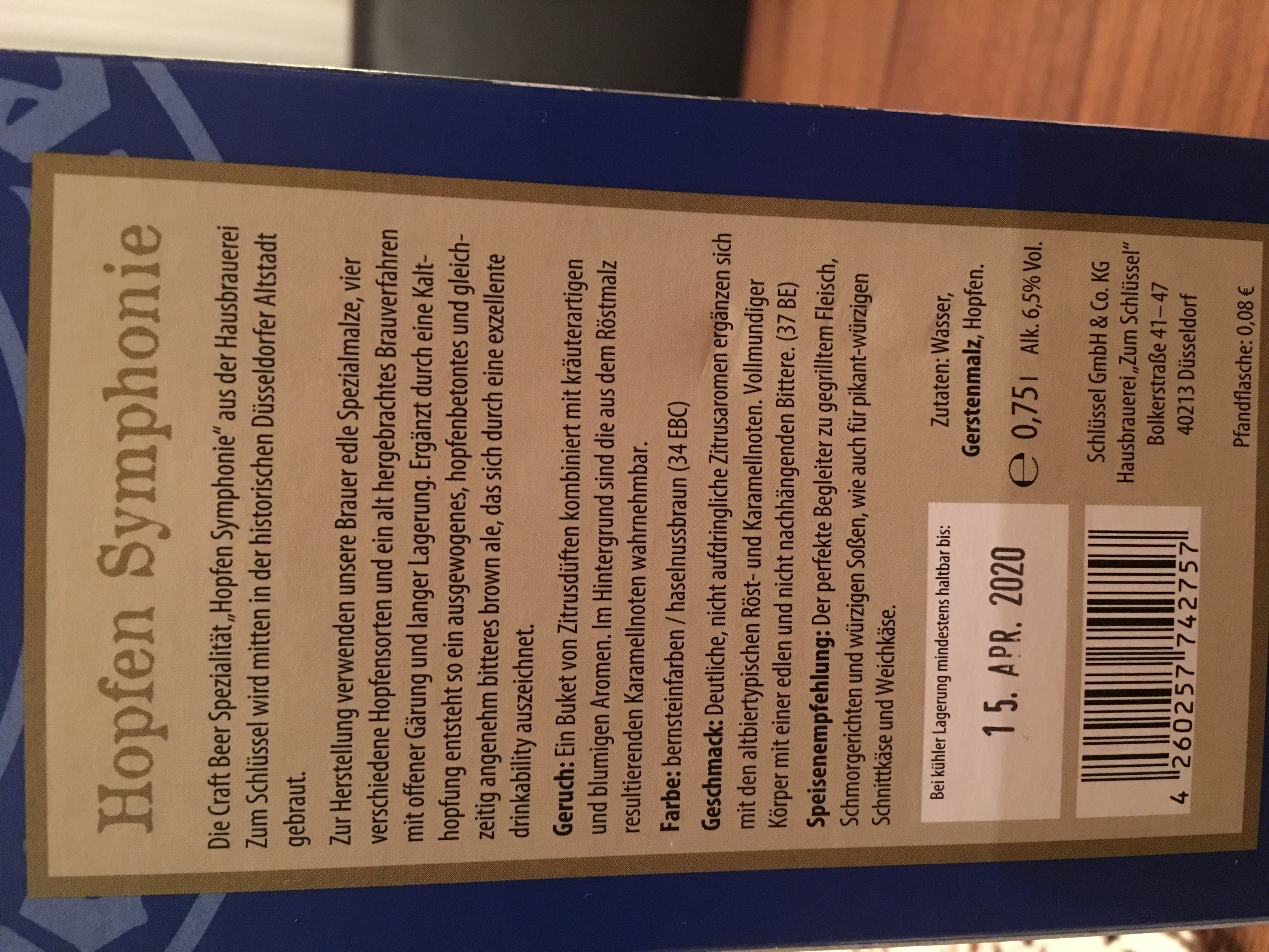 Leider Geil ! Super Bier, sehr Rund, geht für mich kaum besser, muss aufpassen das meine Frau es mir nicht wegtrinkt als alte Düsseldorferin.
