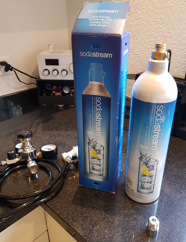 Ja bei mir ist es so ein Zwischenstück damit die Sodastream Flasche ein "normales" Gewinde bekommt auf welches dann der Druckminderer passt. Im Prinzip genau wie das: https://ikegger.eu/products/sodastream- ... 575d&_ss=r