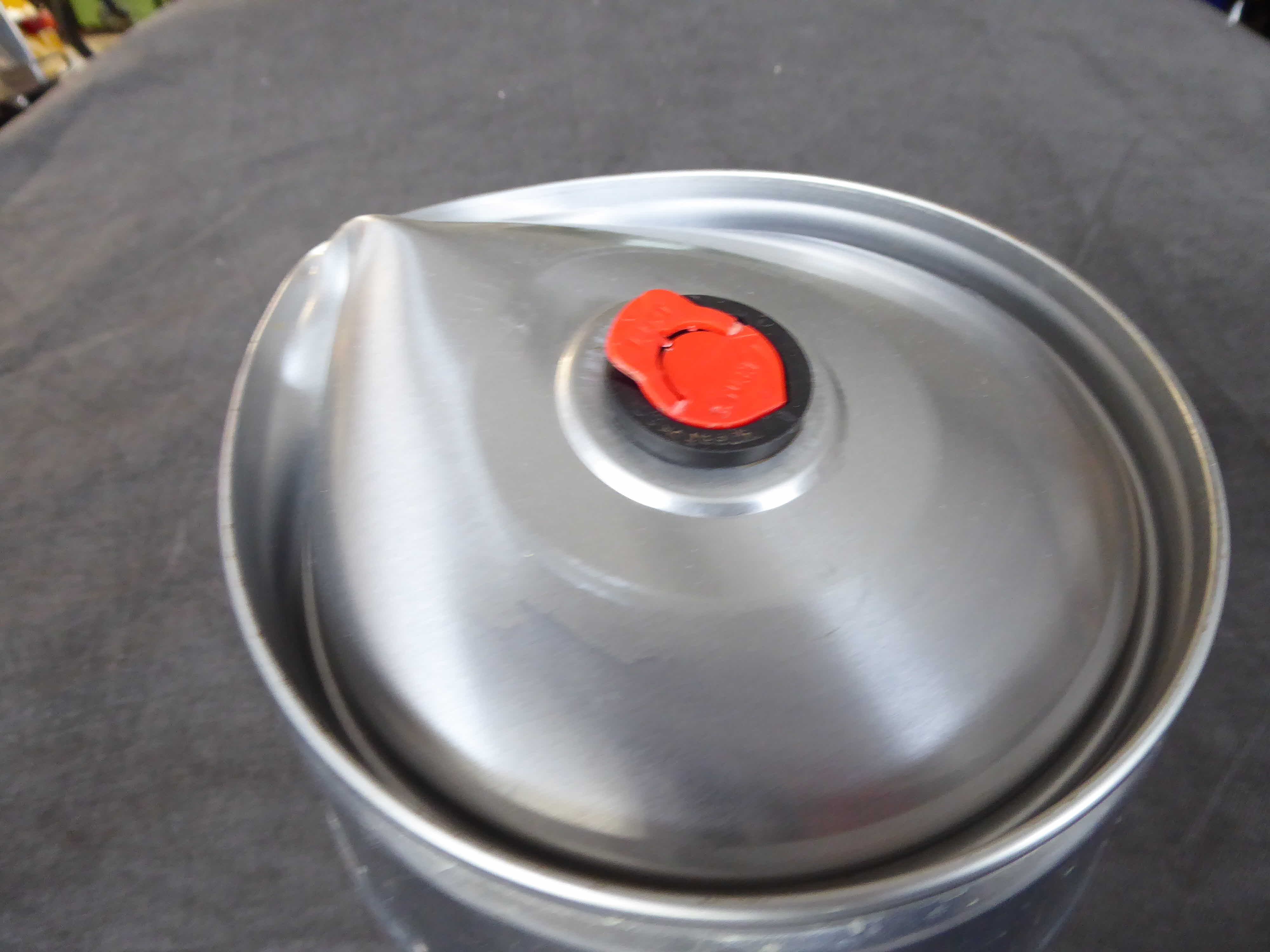 Ist kein Problem. Das Bier war eh für den Gully bestimmt. Nachdem mich ein Mitglied der “community” als arroganter Klugscheisser bezeichnet hat, wollte ich der Sache nochmals nachgehen. Das Bier schmeckte nach Blech und war für mich nicht akzeptabel. Also schaffte ich im Kühler Platz für neues Bier. Das Fässchen stellte ich beiseite. Dummerweise war damals die Temperatur in diesem Raum ca. 35°C. Als ich es dann endlich entsorgen wollte, ein paar Tage später, sah es so aus. Was ja eigentlich kein Wunder ist. Das Bier hatte nach der Nachgärung einen Druck von 2,6 Bar bei 20°C. Laut Fabier erhöht sich dieser bei der genannten Temperatur auf rund 4,5 Bar. Das wars.