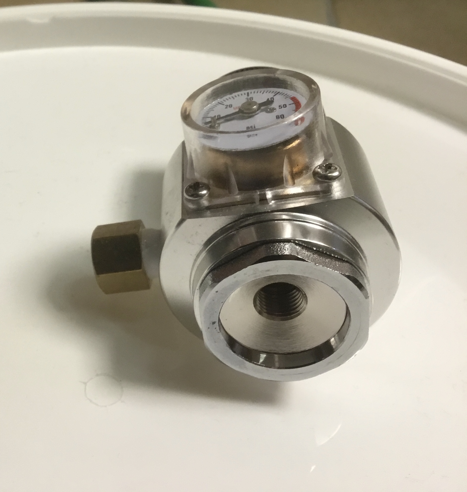 Edit: …und wenn ich's unbedingt wissen will, montiere ich ein Flaschenmanometer auf die Kupplung. Sieht nicht so schick aus wie das iKegger-Manometer, tut aber seinen Dienst und ist weniger kompliziert.