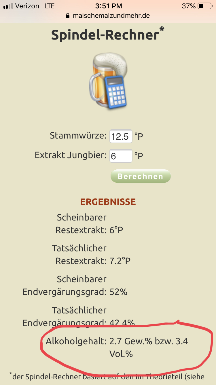 §11 hat geschrieben: Mittwoch 27. November 2019, 20:50 Allerdings sehe ich nicht wie bei 12.5P und 6mas% Restextrakt 5,2vol% rauskommen sollen