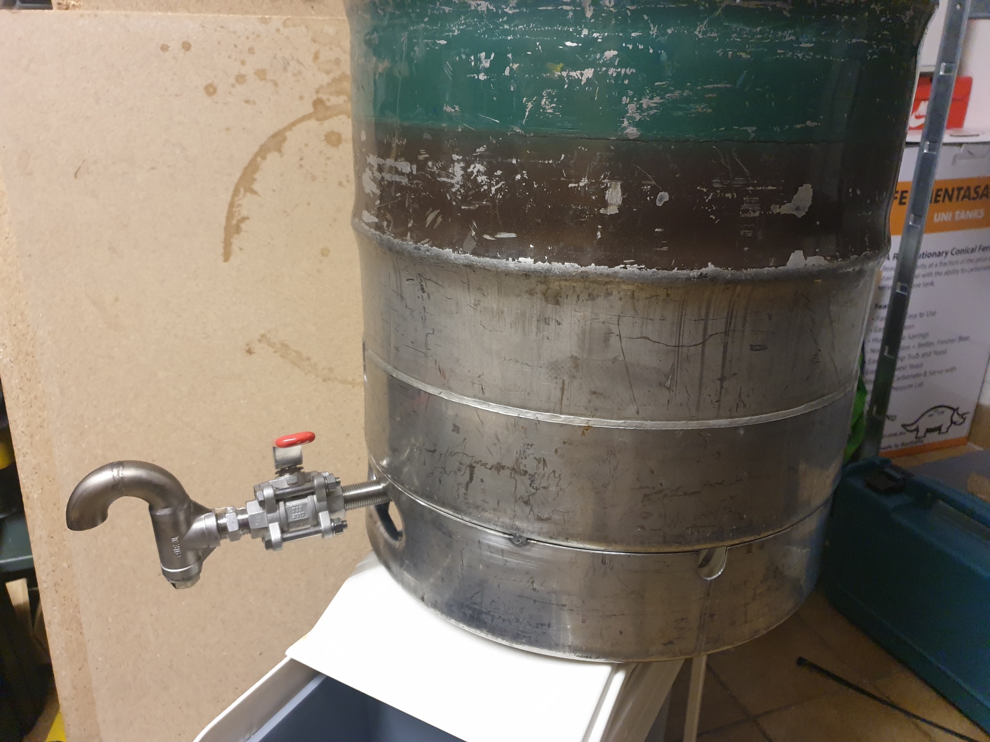 Cool, Danke für die Bilder, dann hast Du die klassische Variante mit dem Umschweißen vom ganzen Randring. Ich habe meinen umgedreht hergenommen und hab also das vorhandene Spundloch genommen. Vorteil war dass ich unter den Ring gekommen bin, musste aber neu den Nippel anschweißen. Siehe ab post 14 und 28 https://hobbybrauer.de/forum/viewtopic. ... ass#p43123