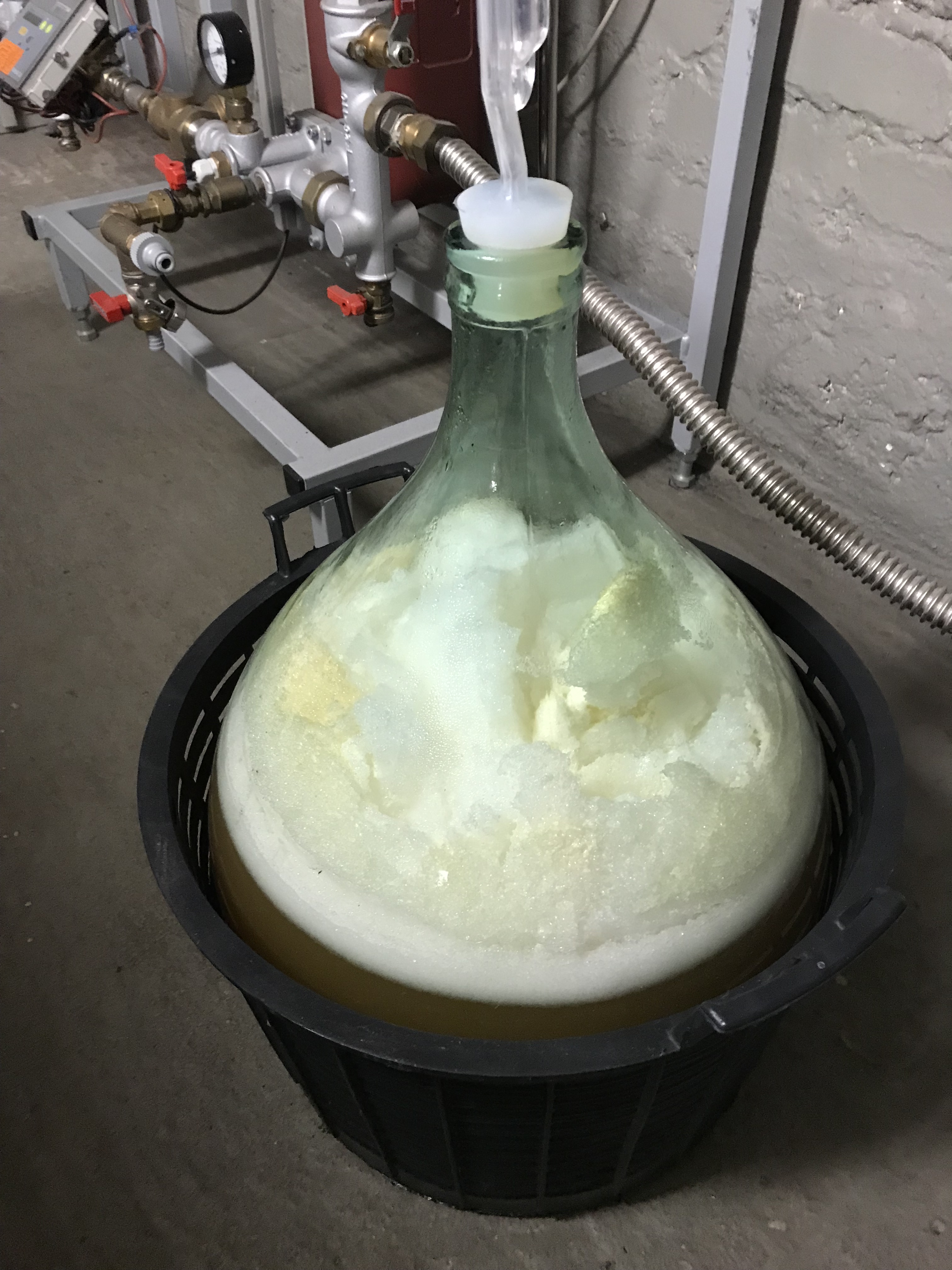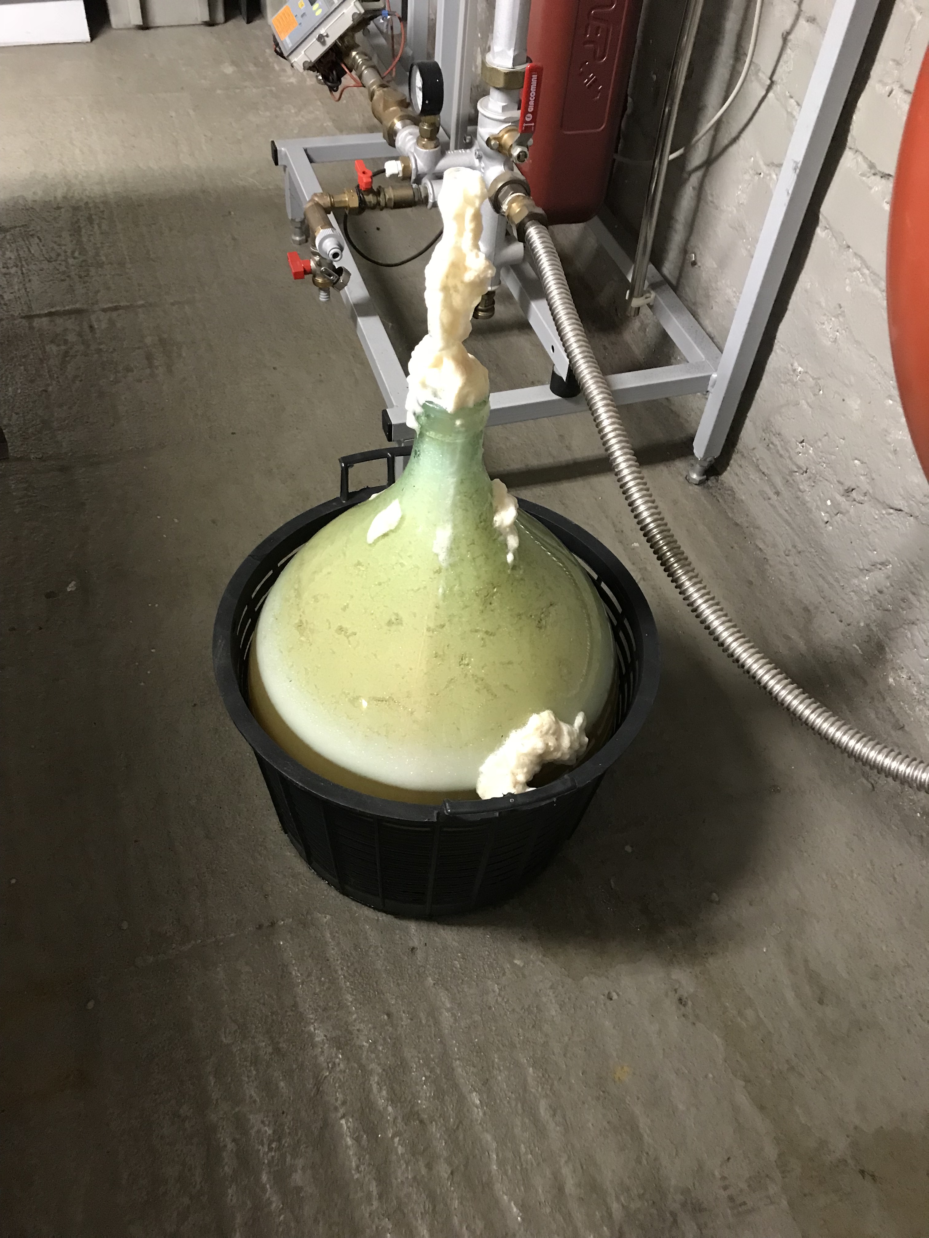 Nach 90 Minuten Kochzeit wurde die Würze angedreht, 15 Minuten in Ruhe gelassen und dann über den Wärmetauscher in den Glasballon abgefüllt. Aktiviert wurde das Smackpack gegen Mittags und blähte sich bis zum Abend hin schön auf. Über Nacht kam die Hefe super an! Die feinporigen Krausen haben mich doch überrascht, so kannte ich sie bisher nicht.