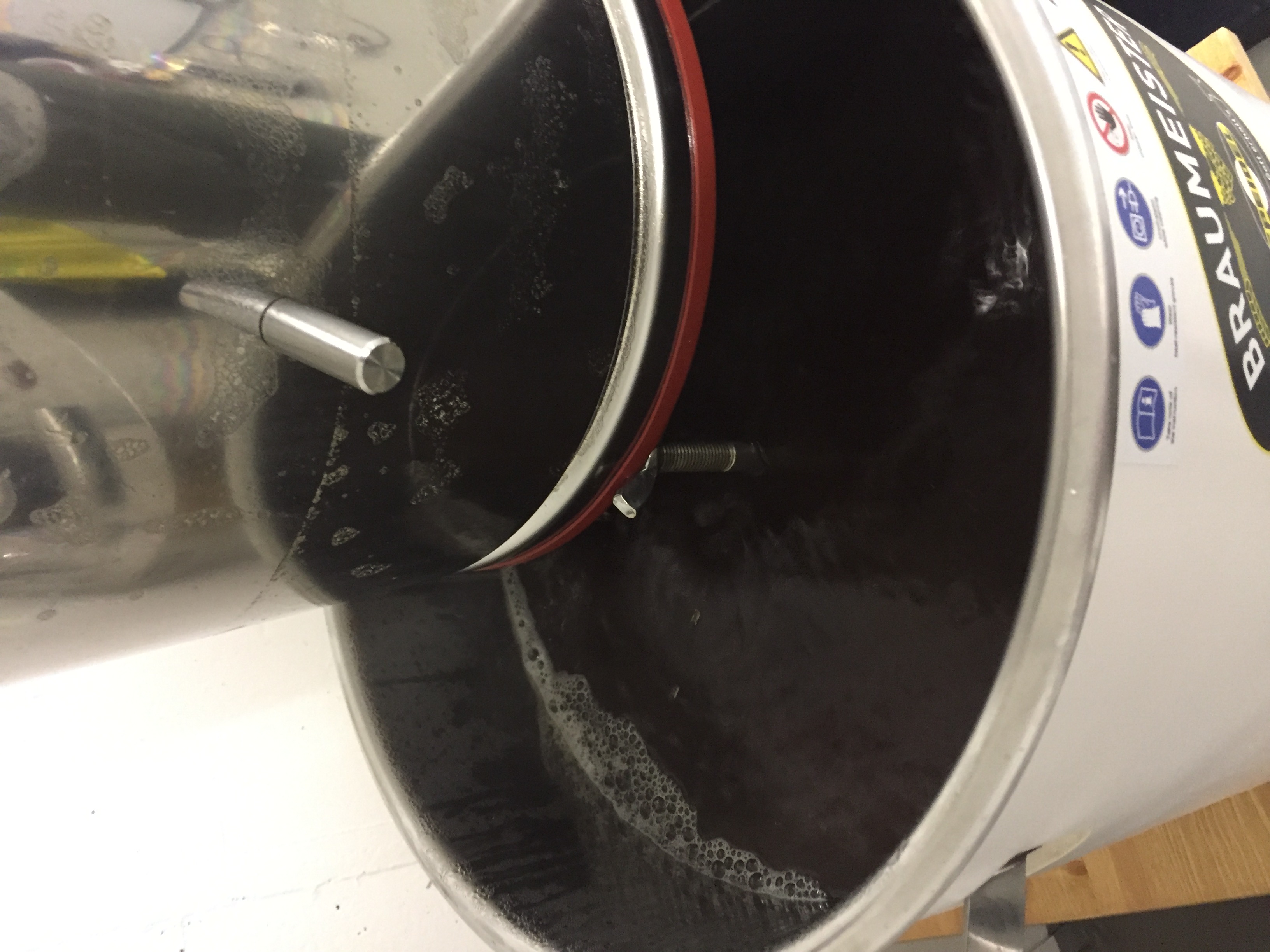 Das Plätschern unten gefällt mir auch nicht, ich hatte mir hier als lösung eine art Wanne gedacht, so wie mein Pizza Blech (siehe Bilder), aber mit ein wenig mehr volumen und unten ein kleiner Silikonschlauch der in der Würze gelangt. So dass Sauerstoff kontakt minimiert wird.