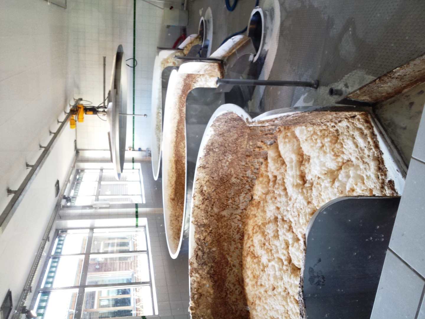 Die Hefe wird in den offenen Gärtanks oben abgeschoben und fällt dann in einen kleineren tiefen Hefetank. von diesem aus wird dann der nächste Gärvorgang angestellt.