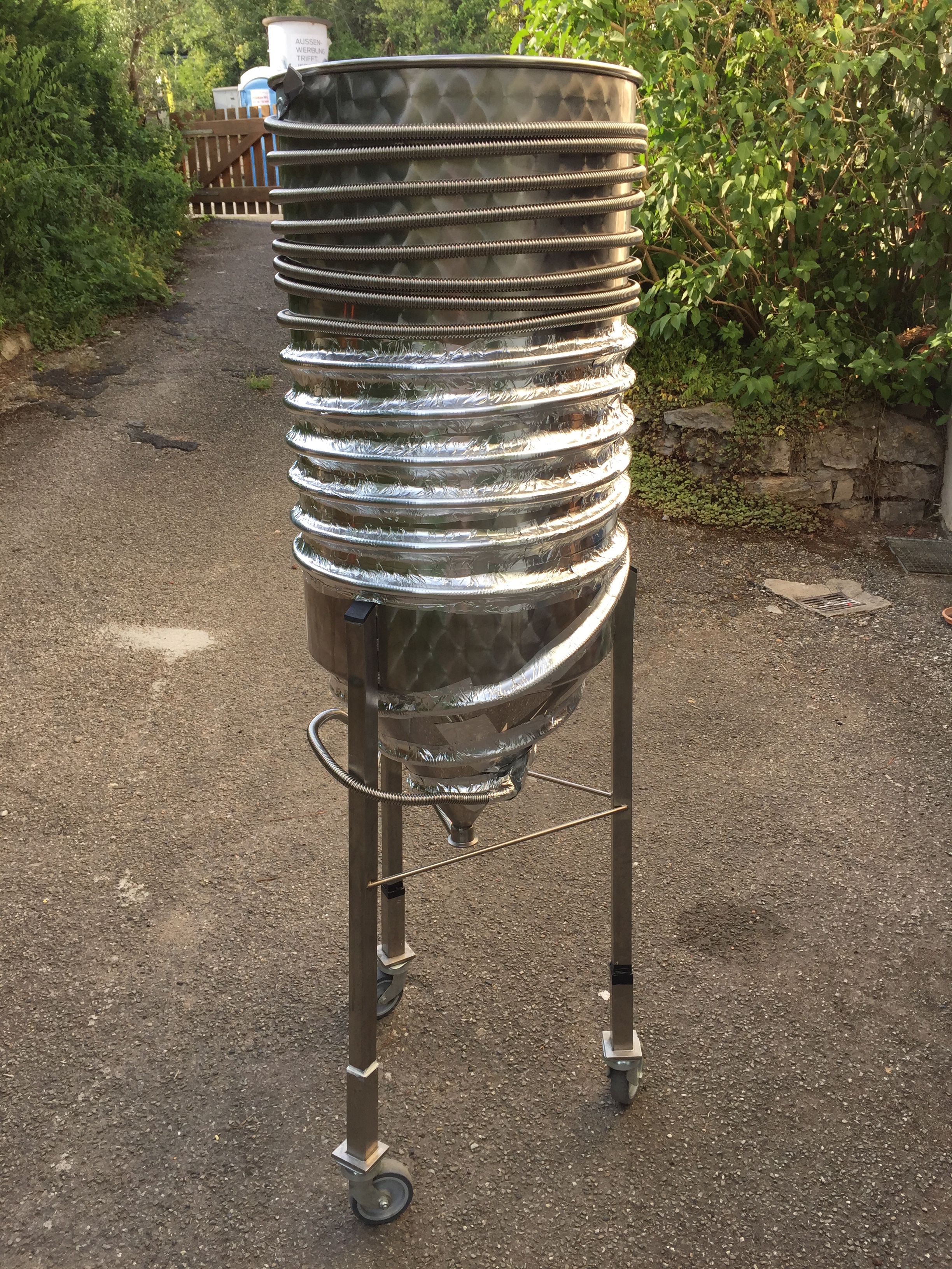 Mein 2. kleiner Tank, den ich neulich günstig geschossen habe, wurde nun von mir testweise umgerüstet, bevor ich mich an meinen großen Tabec Tank von Simon wage (übrigens meine Befürchtungen über die wirklich nicht guten Schweissnähte innen habe sich nicht bewahrheitet: Man kann geschmacklich einwandfreies Bier damit machen und ich hatte auch noch keine Infektion).