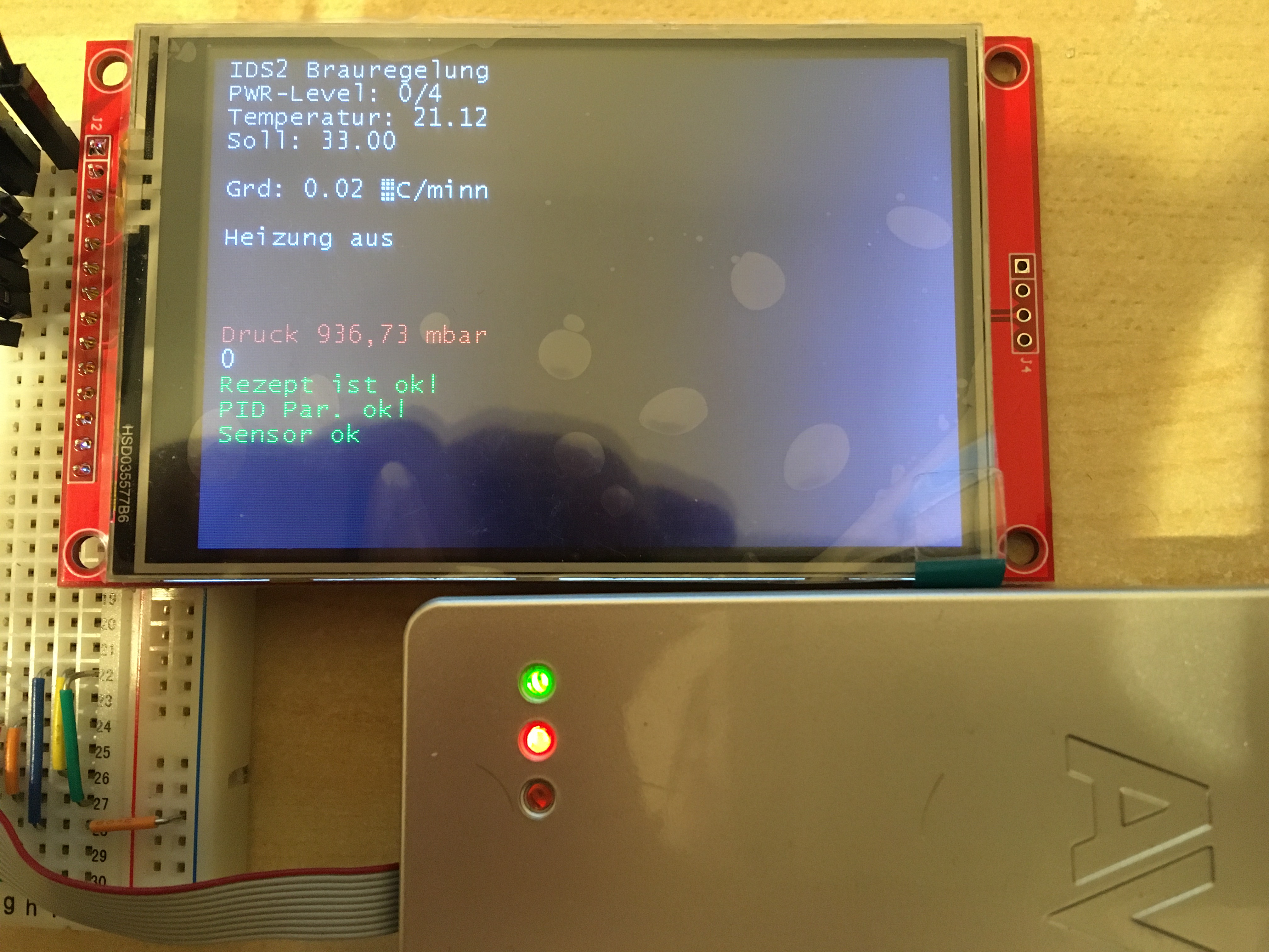 Ich hab den ersten Sud mit der Regelung gebraut. Alles ist super gelaufen. Im Bereich von 72 °C könnten die Regelparameter etwas besser sein da war ich schon eher bei +/- 0,3 - 0,4 K Delta zum Sollwert. Der Prototyp kommt demnächst in ein Gehäuse und dann werde ich die Platine mit dem µC machen so das ich das DevBoard nicht mehr brauche.