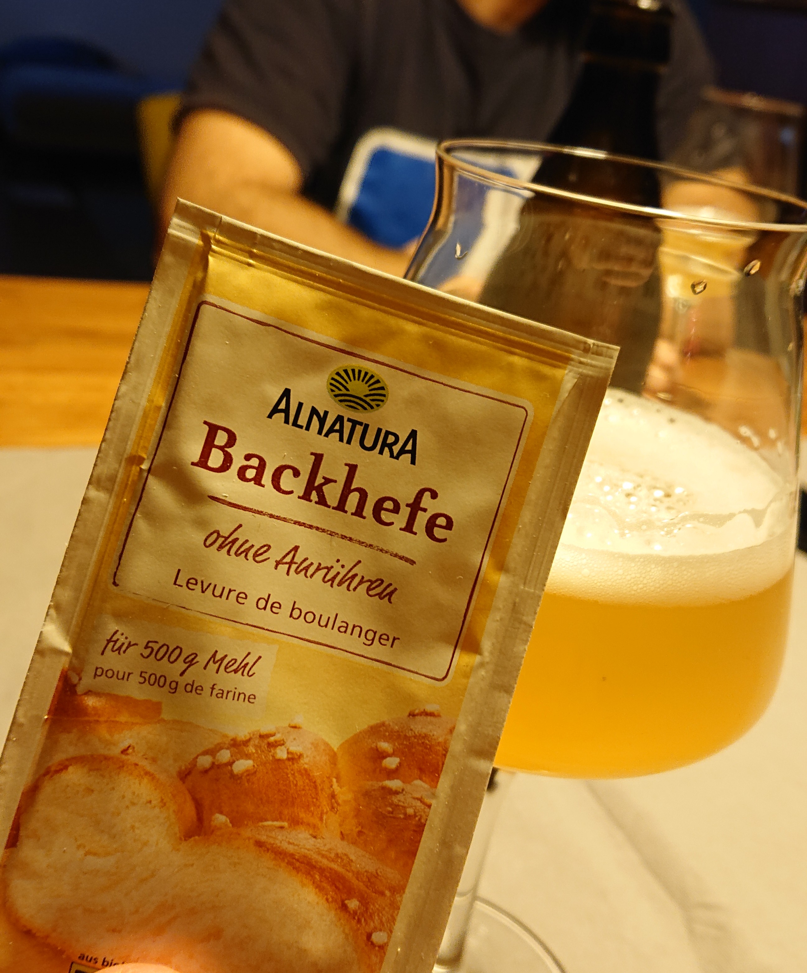 Ein Blonde Ale gestern, 3l vergoren mit dieser Alnatura Backhefe. Die riecht immer so gut, das wollte ich mal testen und habe von letzten Sud 3l abgezwackt. Noch sehr frisch. Sedimentation mies bei der Backhefe, ansonsten gar nicht so schlecht. Hat ein bißchen was von einer Saison Hefe, fruchtig und würzig. Also, falls mal Not am Mann sein sollte, die Alnatura Backhefe kann man nehmen.