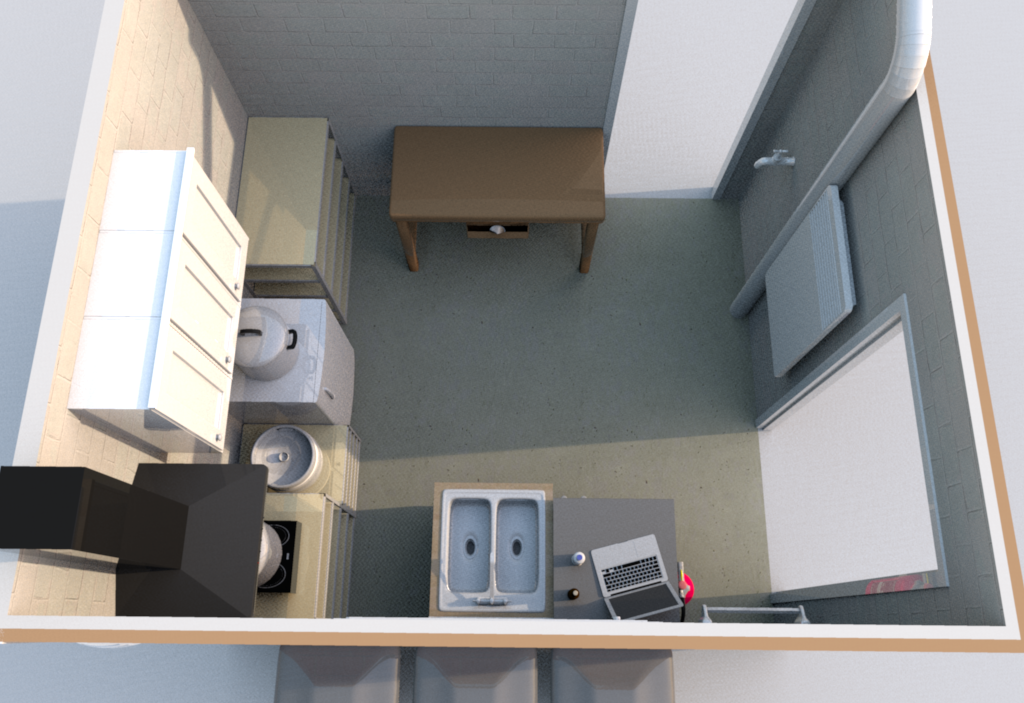 - Und jetzt kommt der Part, der mir in Kombination mit der Brauecke am meisten Sorgen macht, jedoch auf jeden Fall aus Platzgründen auch hier in den Raum muss: Die Werkbank und Werkzeug mit Montagewand. Feuchtigkeit, Rost, Schimmel auf Holz, sind die ersten Gedanken die mir bei dieser Idee in den Sinn kommen. Wie ich das löse oder zu lösen versuche, erkläre ich dann im Laufe der Entwicklung bzw. dann, wenn es soweit ist