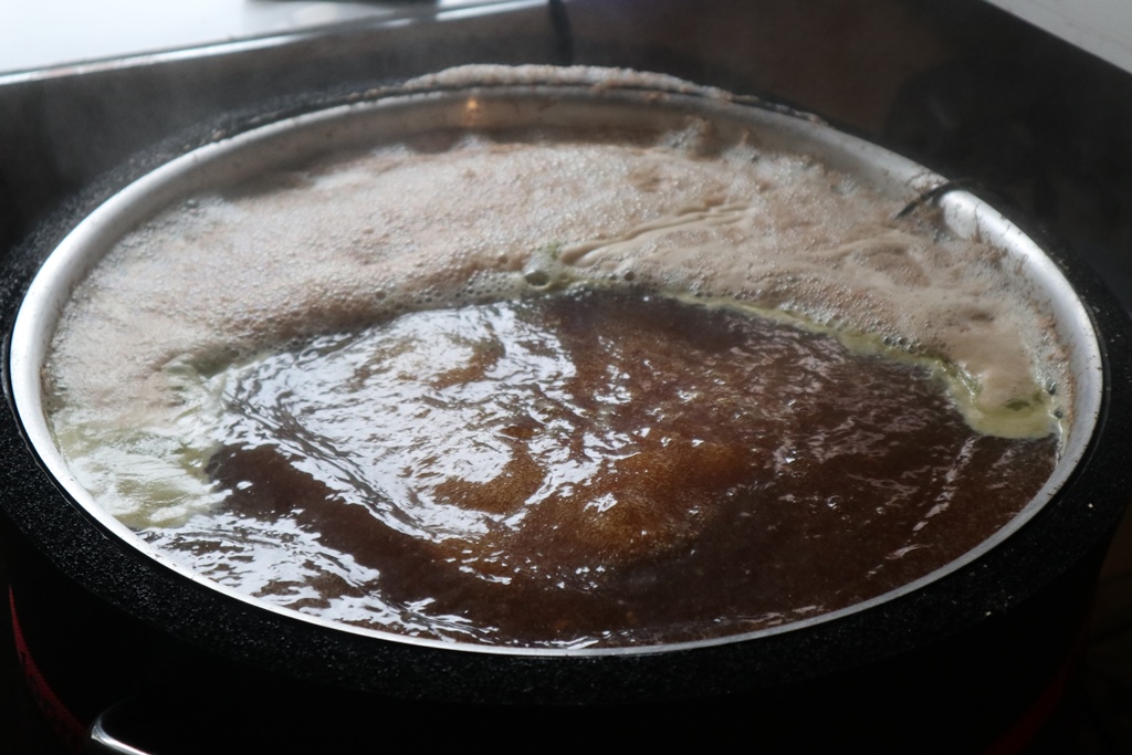 Da fällt mir der Treber nicht zusammen uns die SHA erhöt sich. 40L Nachguß 10:30 Kochen (der Beweiß das die Hendi 60l wallend kocht) 12:00-13:00 auf 12°C kühlen und anstellen