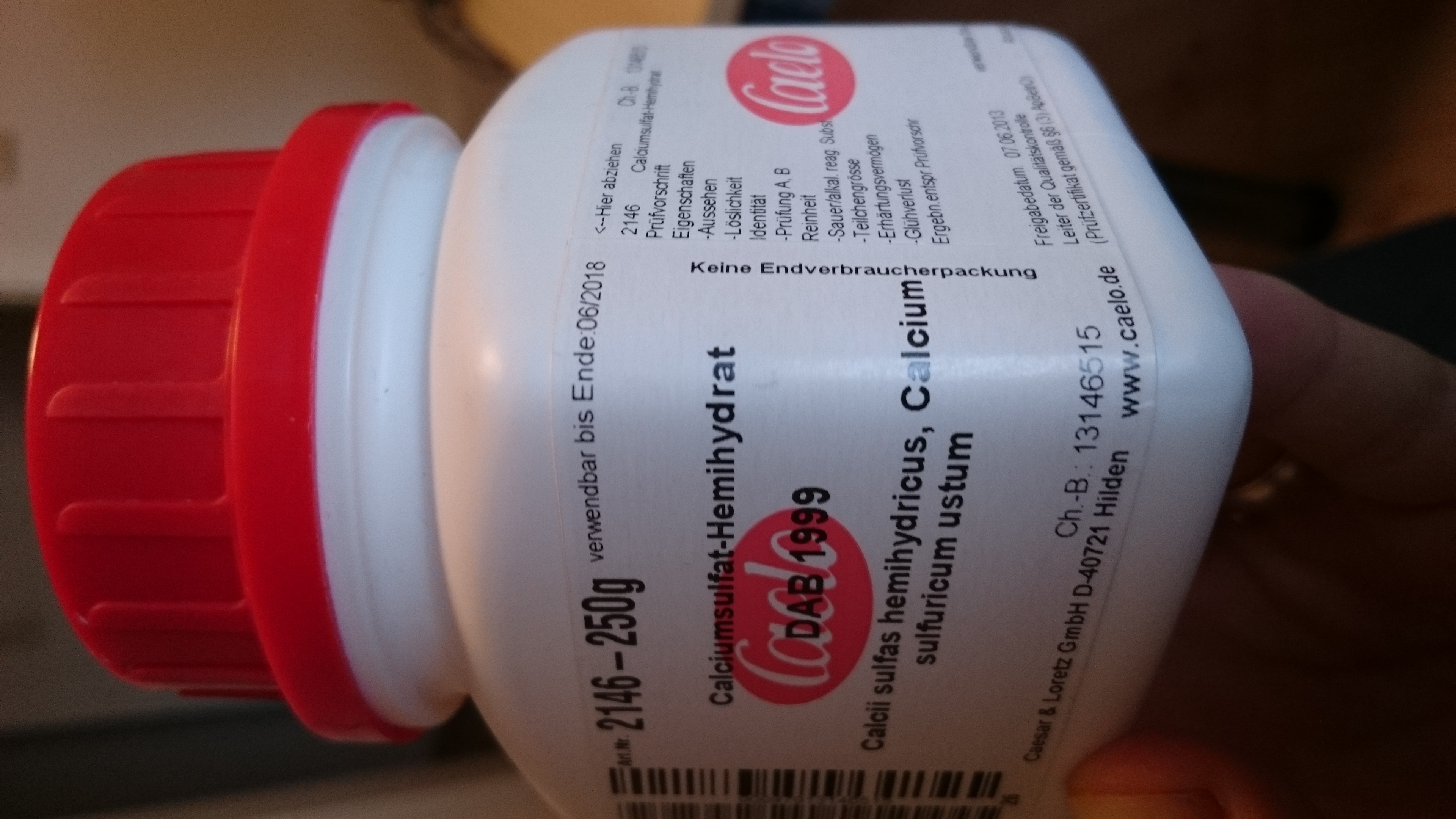 Super, danke. Das war genau was ich gesucht habe. Ich denke schon, ich habe 'reines Bassanit'. Ist zumindest aus der Apotheke und da steht 'Reinheit entspricht DAB 1999'. Ich weiss zwar nicht was das heisst, aber nach Baugips schaut es nicht aus.