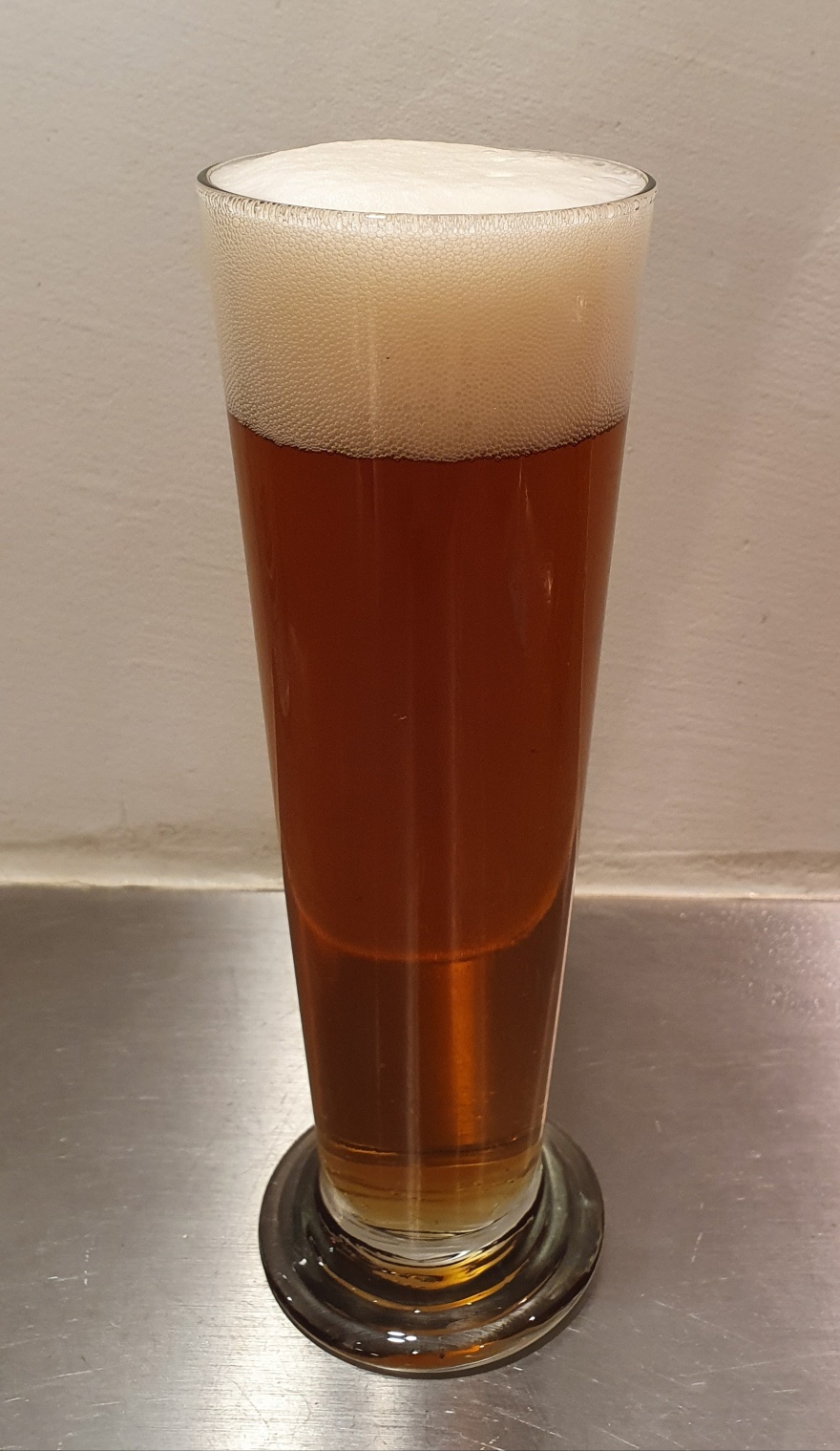 Das Bier ist tatsächlich nicht schlecht geworden. Meine grösste Befürchtung war ja DMS, wovon ich aber nichts rausschmecke, resp. rausrieche. Auch merke ich nichts wegen etwaiger unverzuckerter Stärke wegen der kurzen Maische. Die zu tiefe Stammwürze fällt mir auch nicht auf.