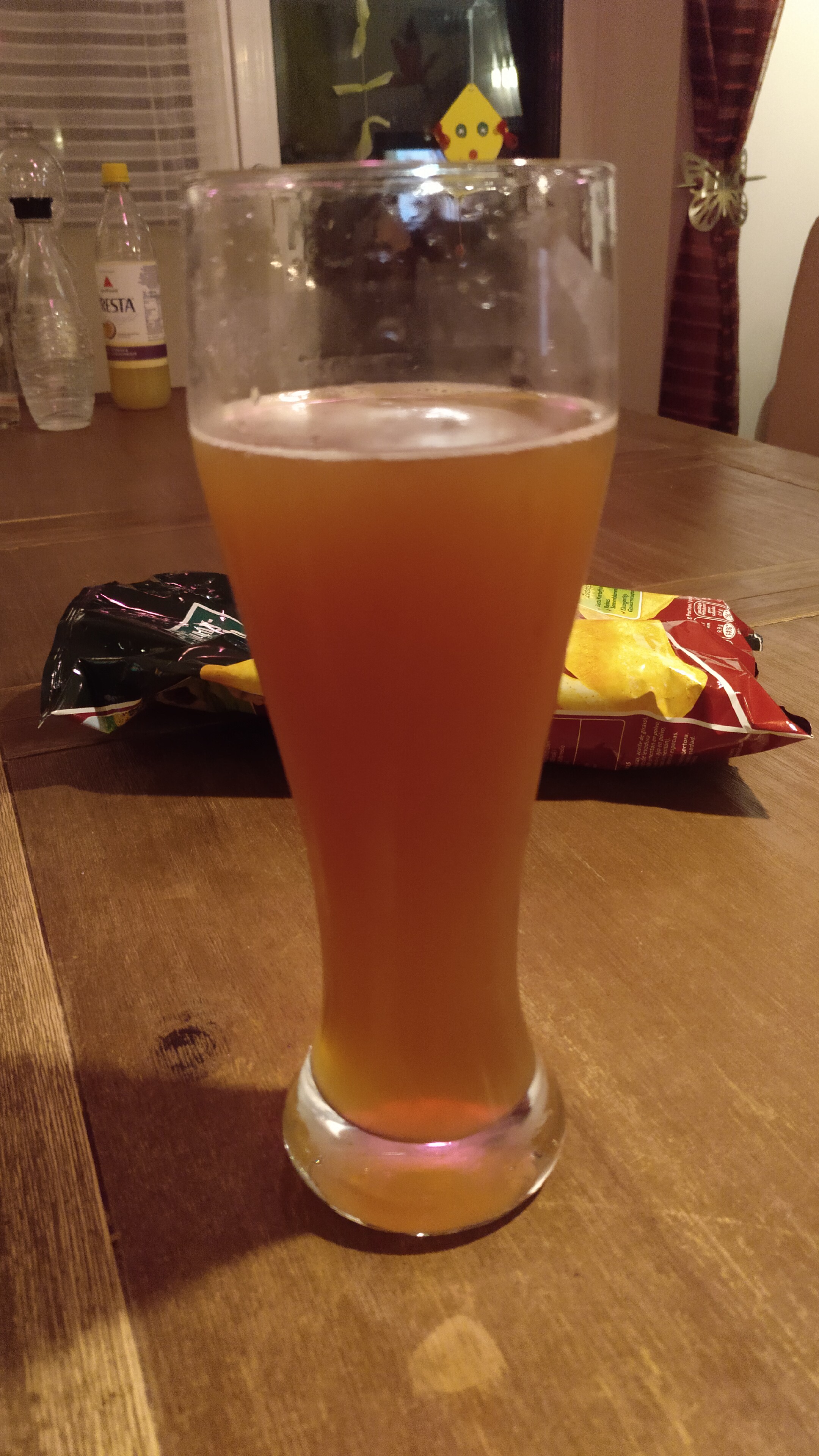 Selbstgebrautes Hefeweizen (Bernsteinweizen-Klon). Hat ein deutliches Nelkenaroma, obwohl die HG bei über 23 °C durchgelaufen ist...