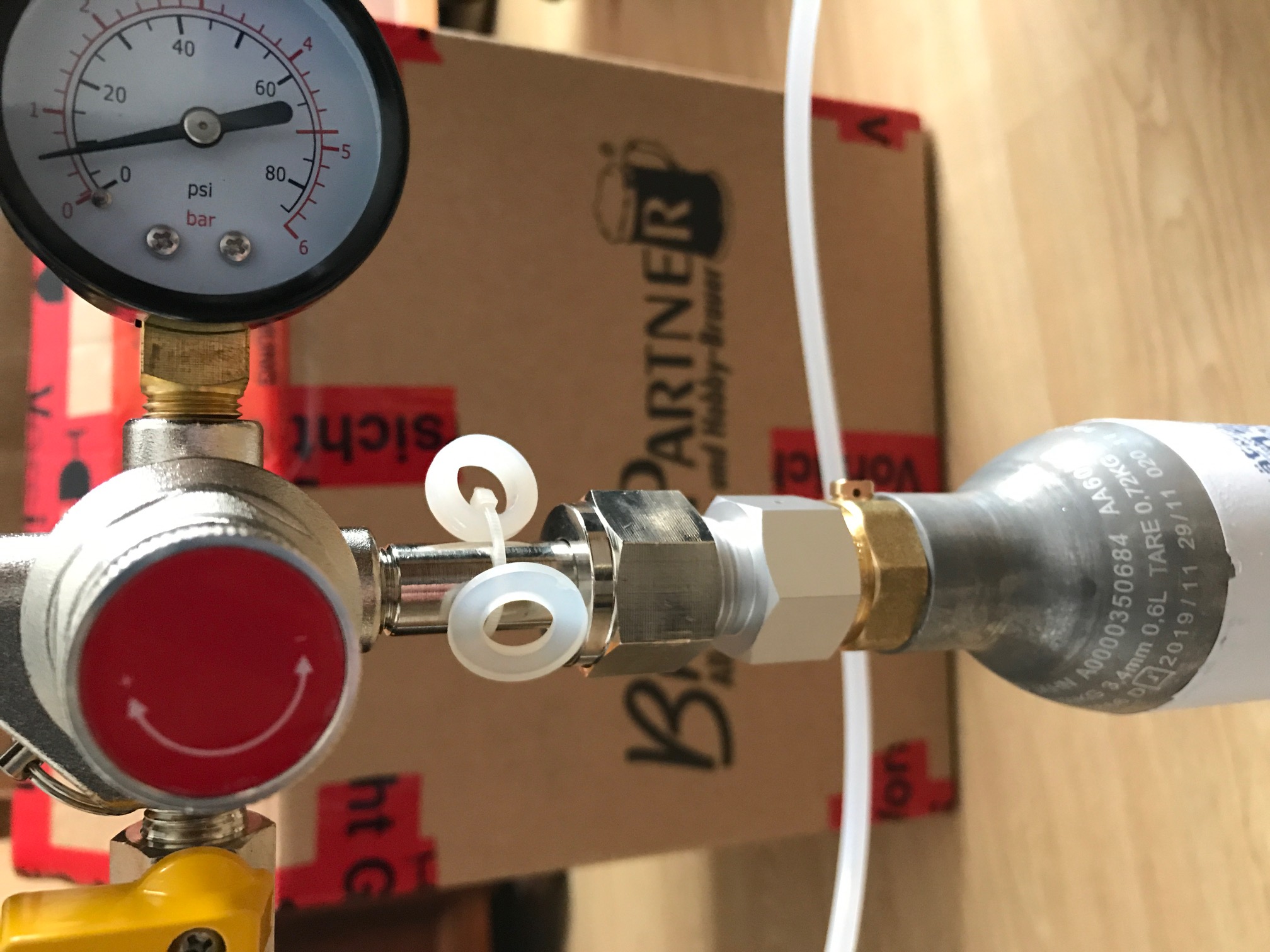 der Übergang vom Schlauch kommend von der CO2-Flasche hin zum dünnen Schlauch des Biermaxx, was hast du da für einen golden Adapter zwischen? Den würde ich eventuell auch noch brauchen, wenn ich auch meine CO2 Flasche direkt an die Brücke hängen will.