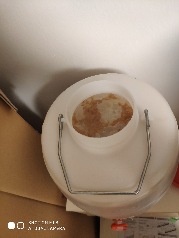 Mein erster Barley Wein 23 °P, mal wieder eine Nervensache. Kam erst wegen schlampig-schwachem wlp-004-Starter aus eigener Flaschengärung seit Februar (habe der viel zu oft zu viel Zucker pur zugegegen, die Hefeisten werden mich steinigen, vielleicht hab ich sie auch gekillt..) nicht an und habe daher gestern Nacht dann schon das Päckchen s-33 und gezückt und der wlp004 gedroht. Dann aber noch schnell ein Bier getrunken und nochmal den Bodensatz zugegeben (es sind nur 4,5 L) und siehe da heute morgen dieses wunderbare Bild.