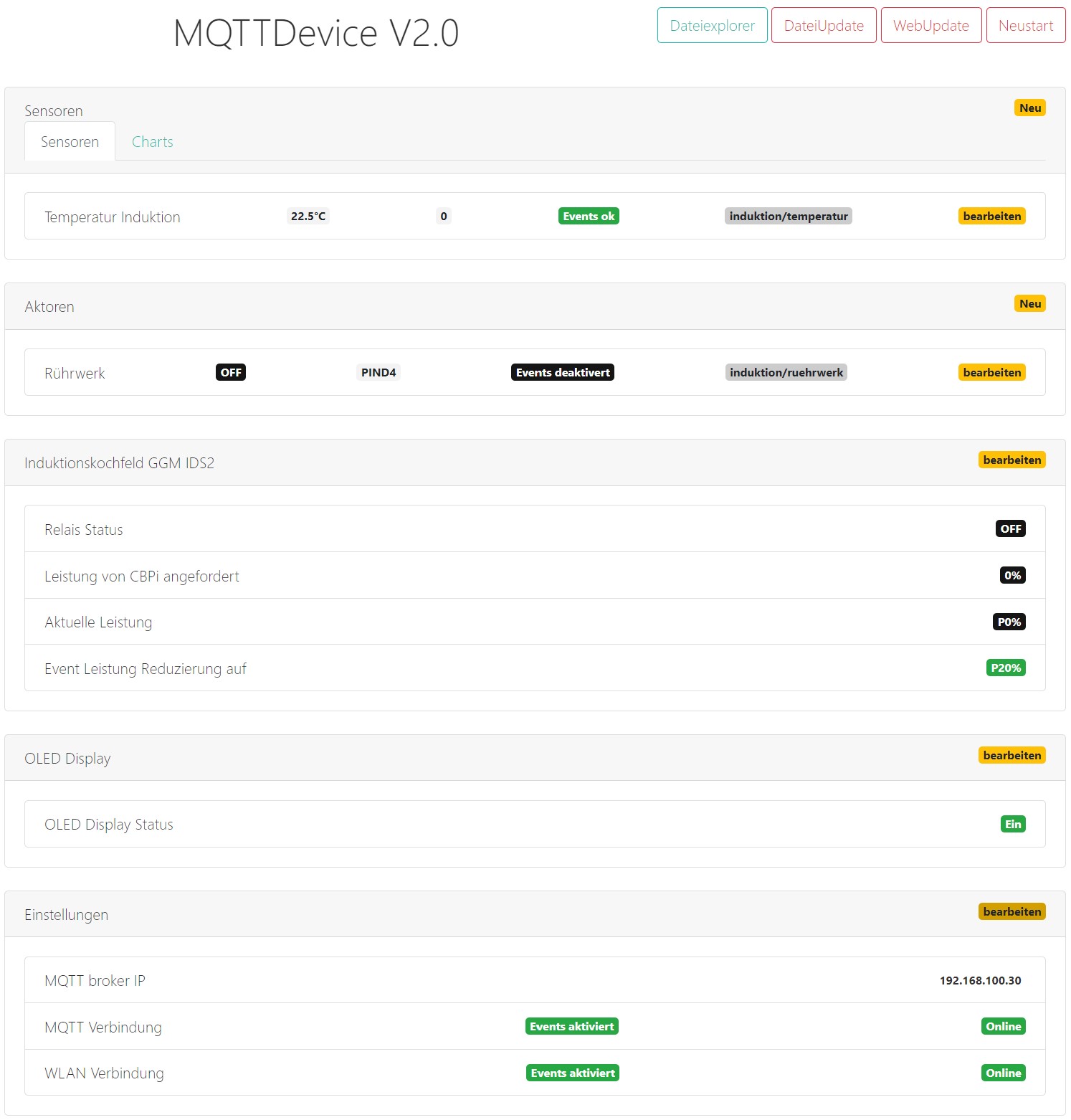 Die Anbindungen an Temperatursensoren DS18B20, an Aktoren wie Rührwerk und Pumpen, an Relaisboards, an SSRs mit Ringheizelement und vor allem auch die direkt Anbindung an das Induktionskochfeld GGM IDS2 waren problemlos.