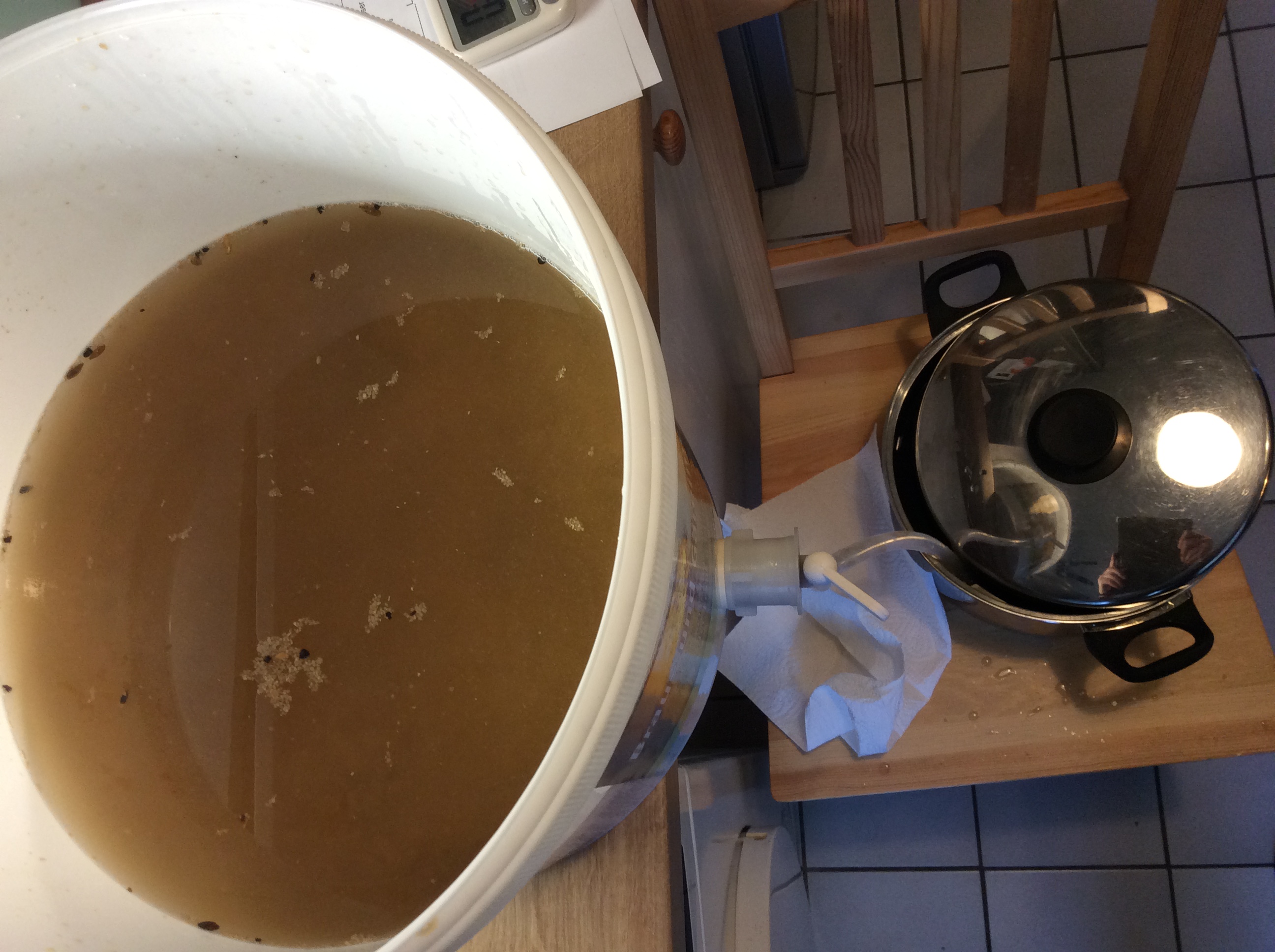 -Nach dem Läutern waren es ca 15,5 Liter die noch über waren und in den Einkocher zum Würzekochen wanderten.