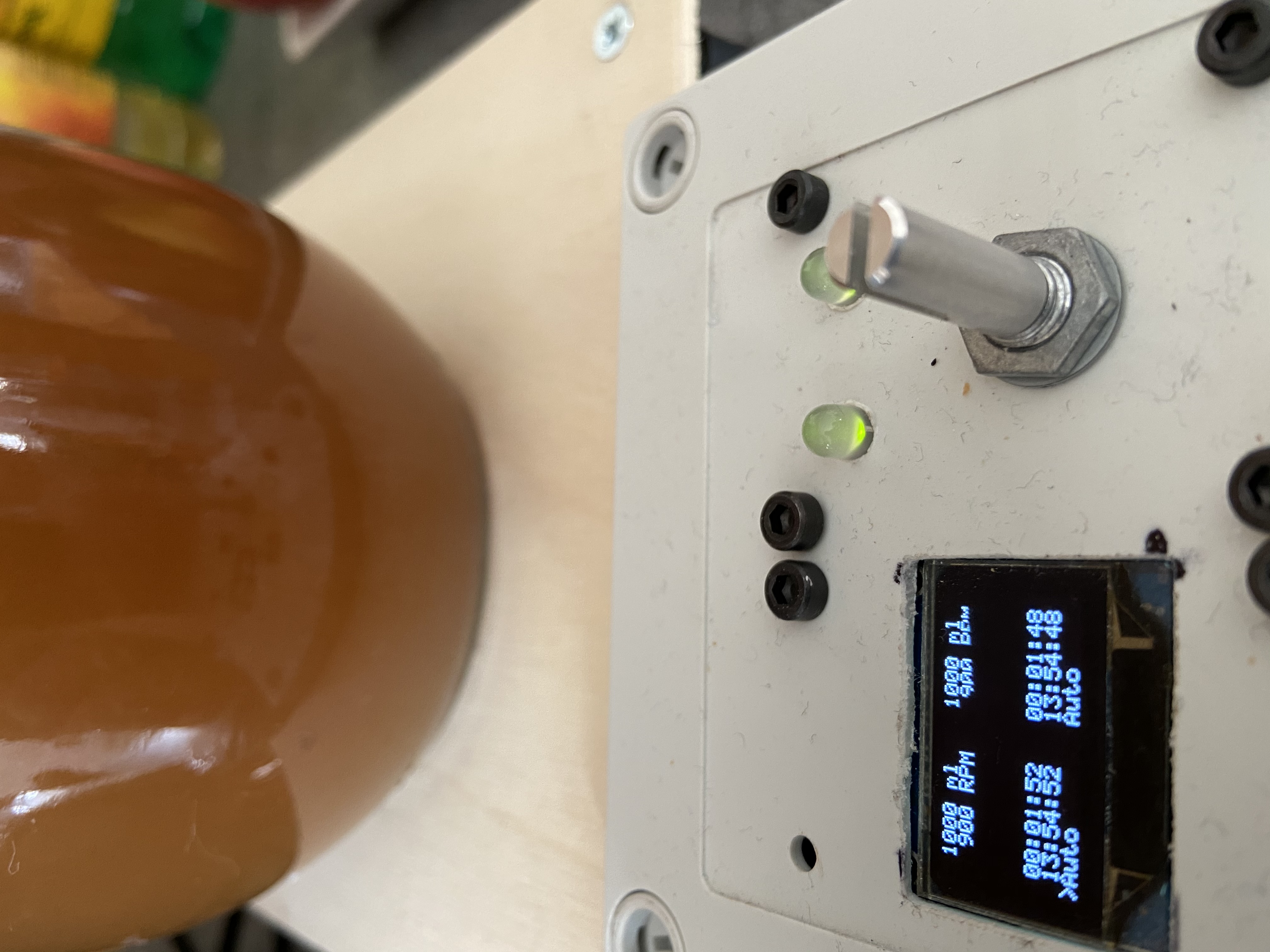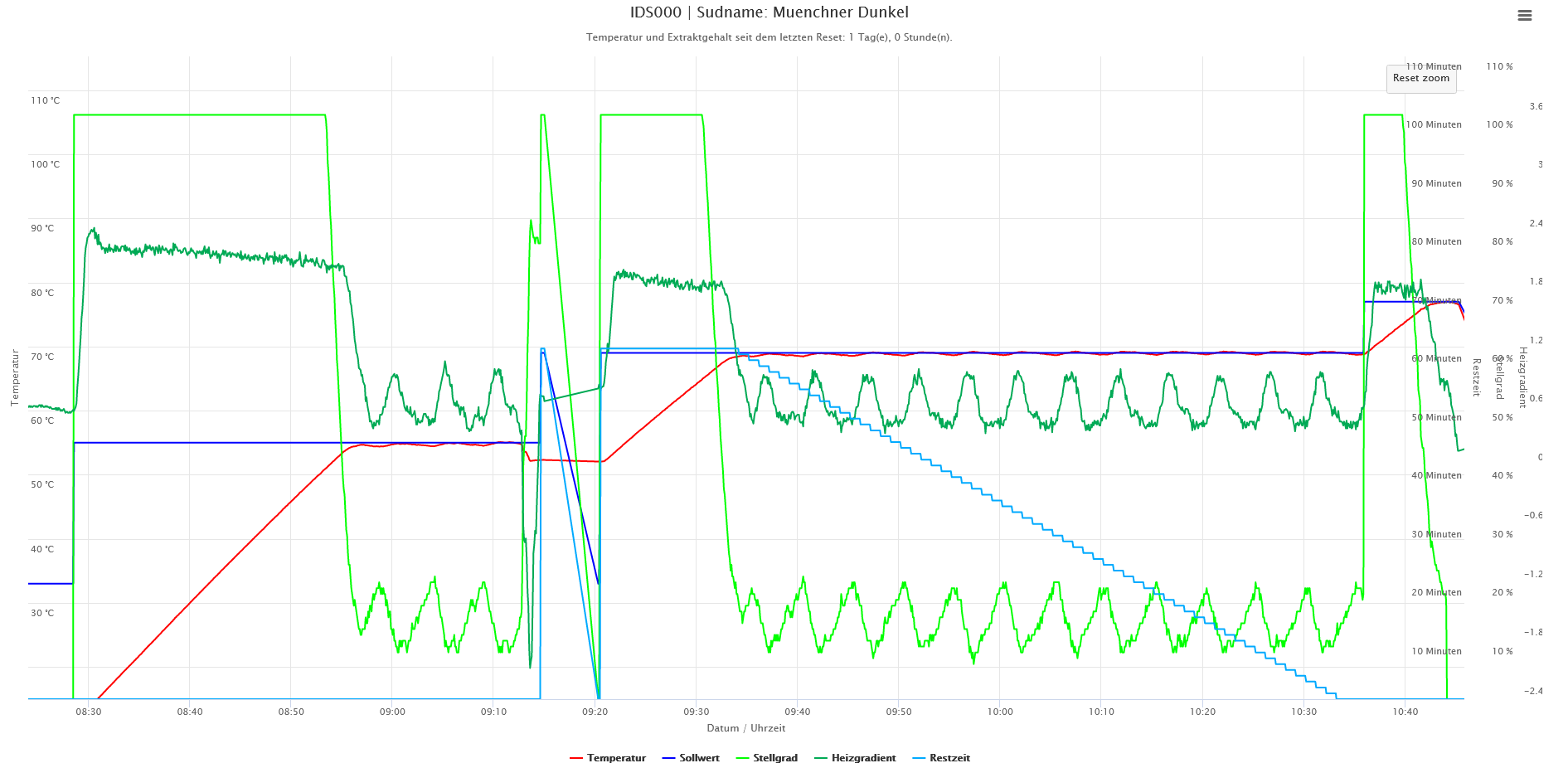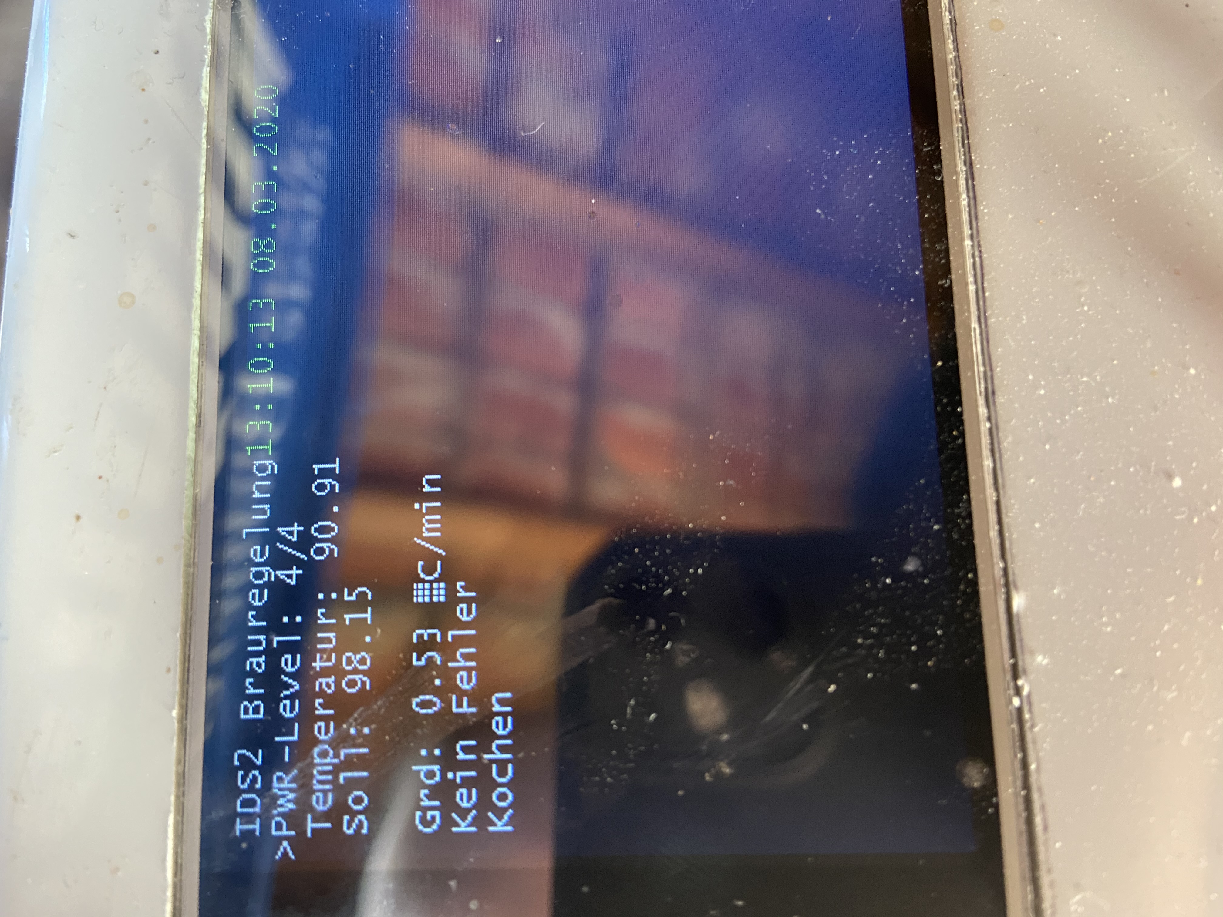In der Steuerung wurde die neue Version 0.96b getestet bei die erste Rast erst nach Bestätigung nach der Zugabe des Malzes erfolgt. Leider war ein kleiner Bug in der Software der kurz behoben werden musste, daher gab es eine ungeplante kurze Rast von 8 Minuten bei 52 °C.