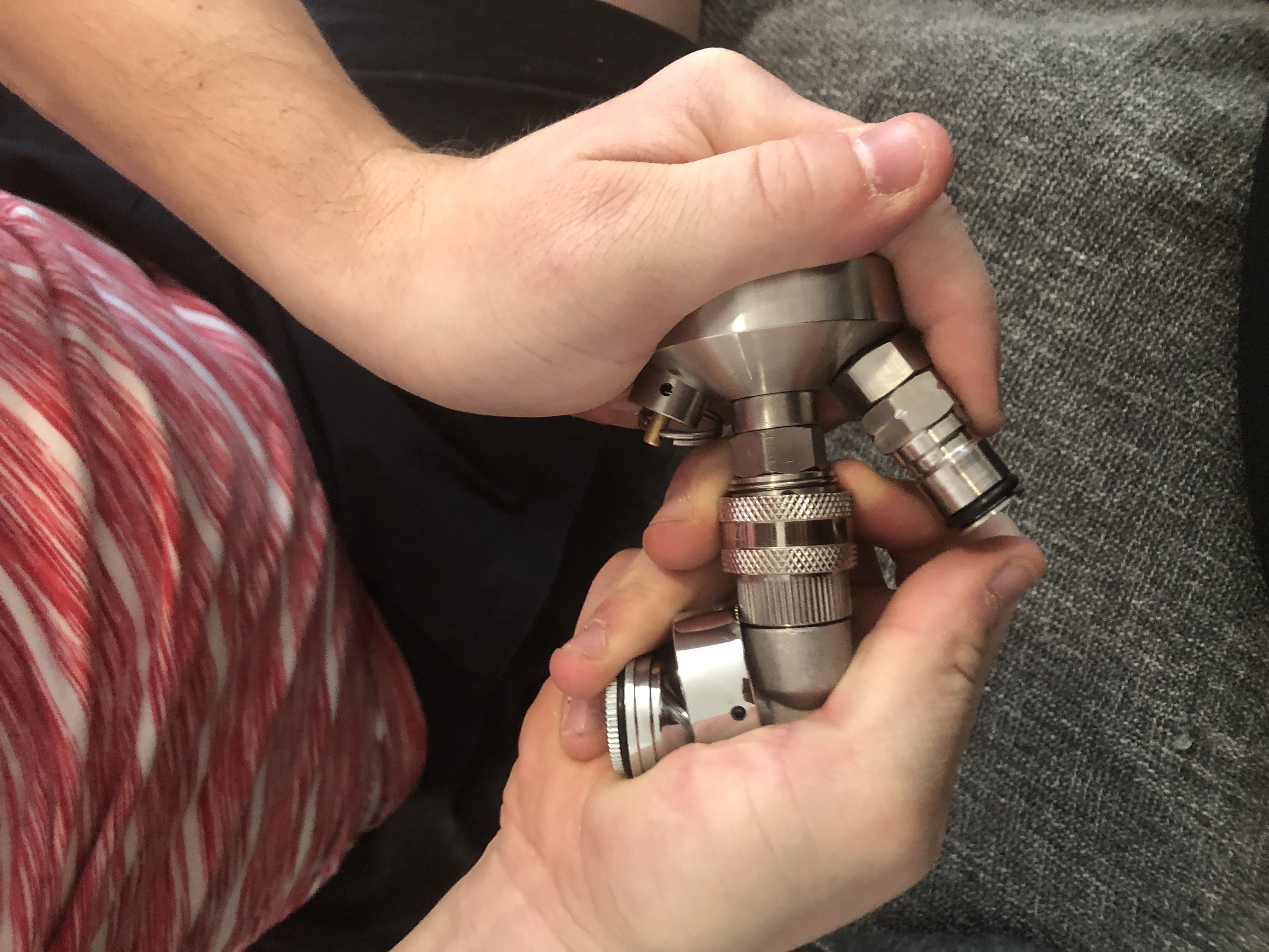 Ich habe verzweifelt nach einem Adapter vom MFL Anschluss auf einen 10mm Schlauch gesucht, habe aber nur welche auf 8mm gefunden. iKegger hatte die Idee den Schlauch direkt auf dem Gewinde zu befestigen. Es liegt ja auch nur 1 PSI an.