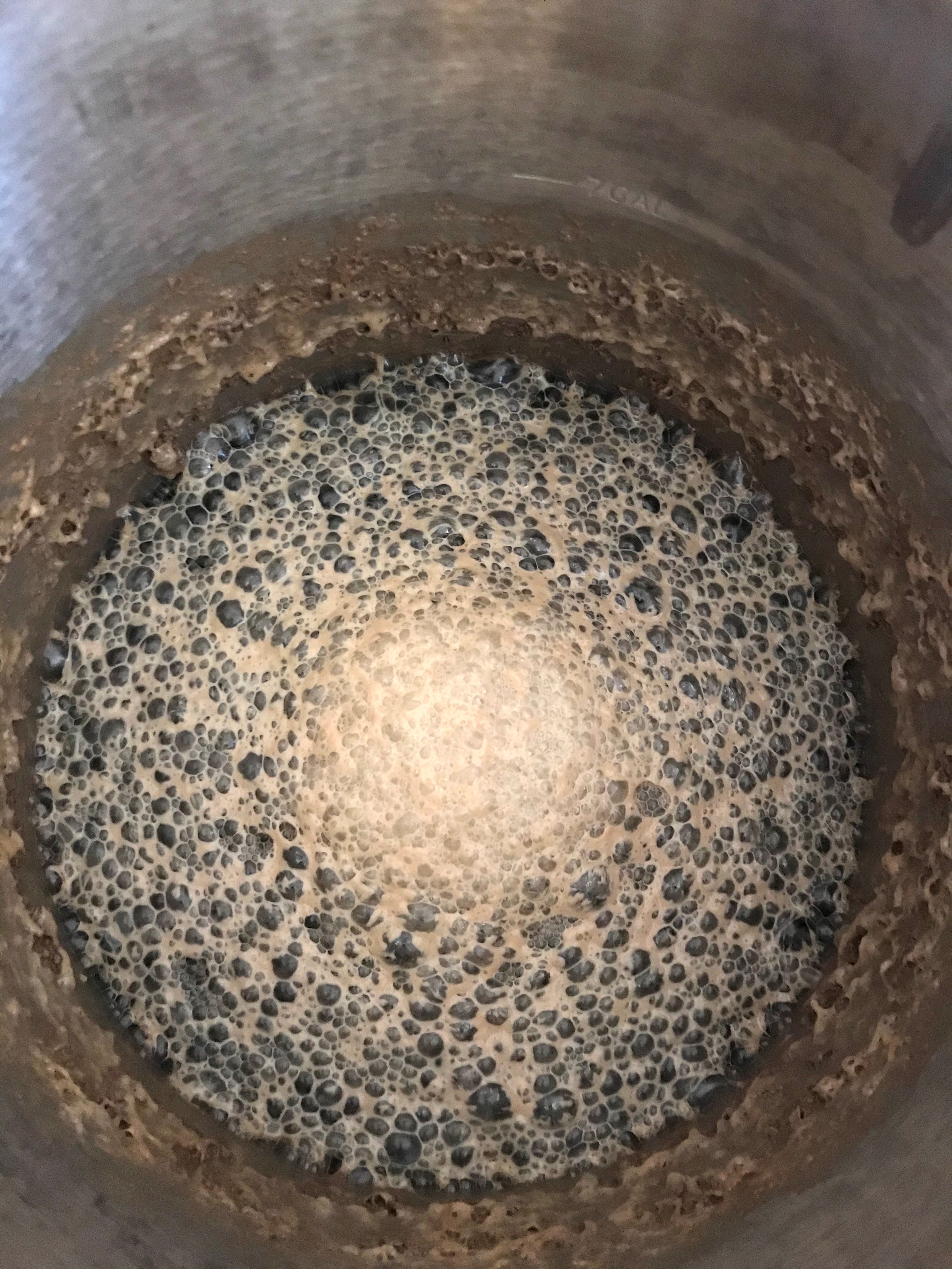 Allerdings schwimmt derzeit noch eine ziemliche Hefe-/Harz-Schicht oben im Gärbehälter: