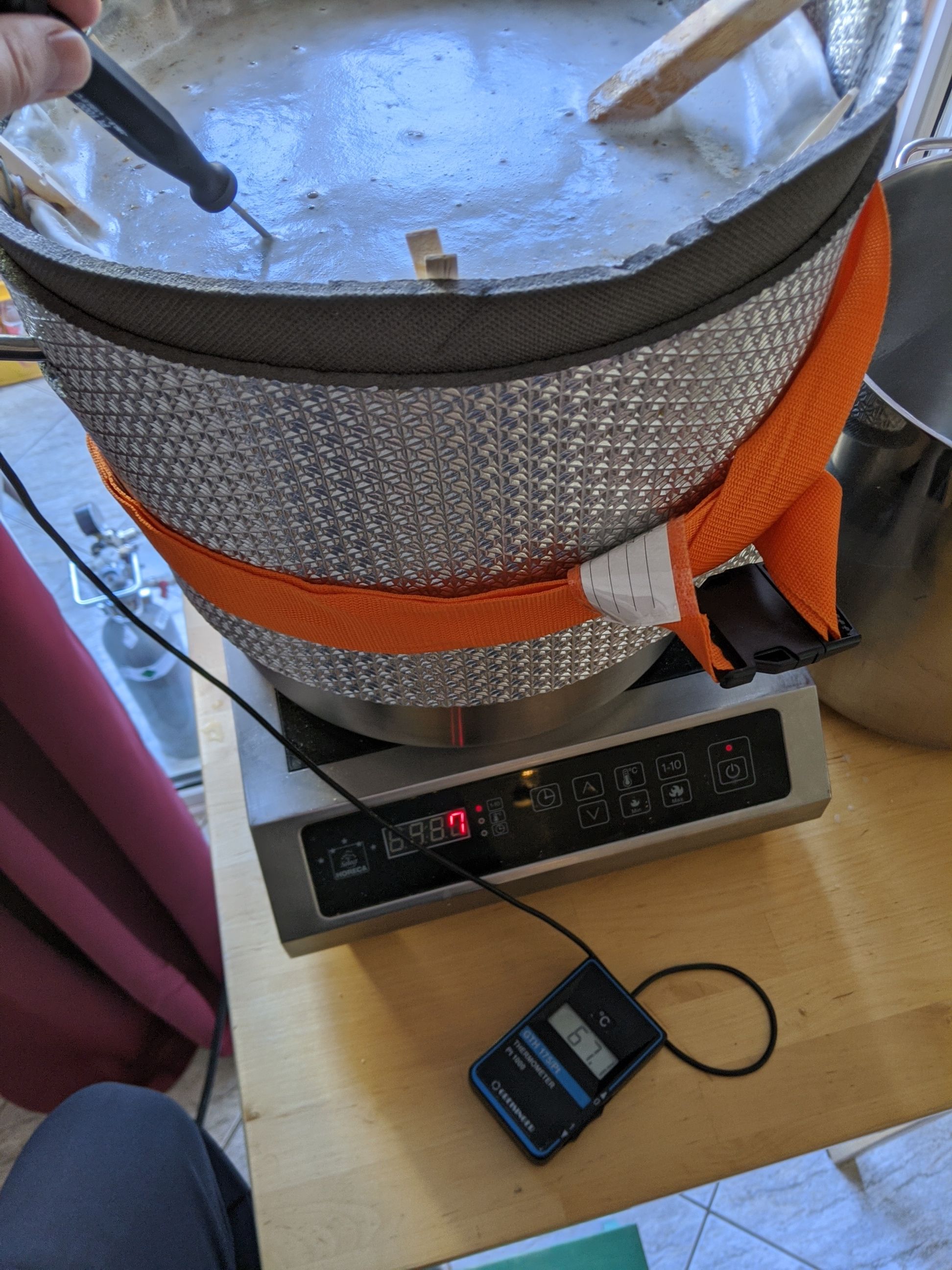 Mit Deckel wird die Temperatur vom Topf überraschend gut gehalten. Ich musste nur einmal FIFA unterbrechen und nachheizen :Bigsmile