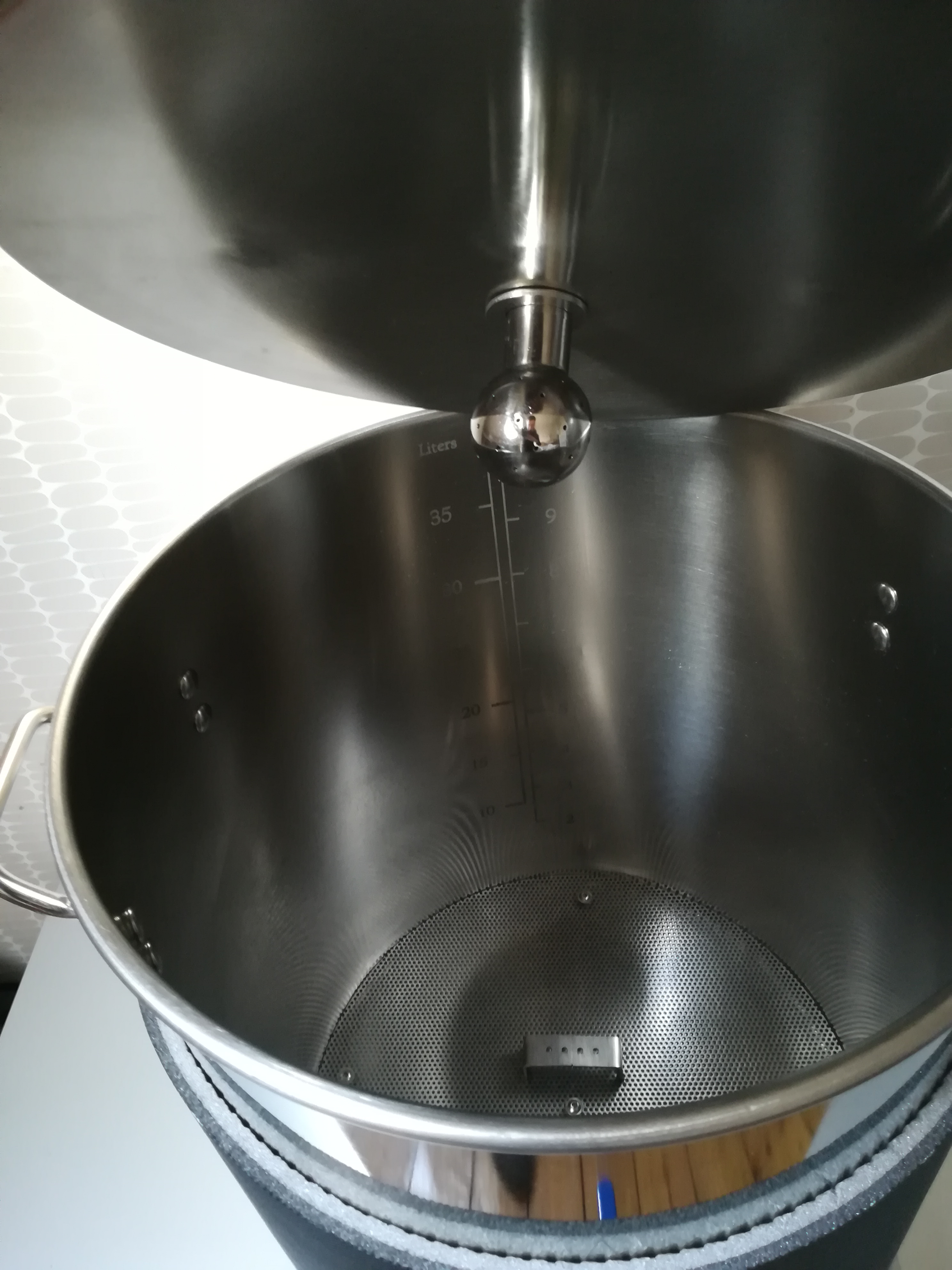 -wie bekomme ich am besten diese 4/5L aus dem Brautopf? Irgendwo hier habe ich gesehen, dass wer einen nach unten zum Boden gerichteteten Winkel eingebaut hat um genau das zu erreichen. Mal ausprobieren.