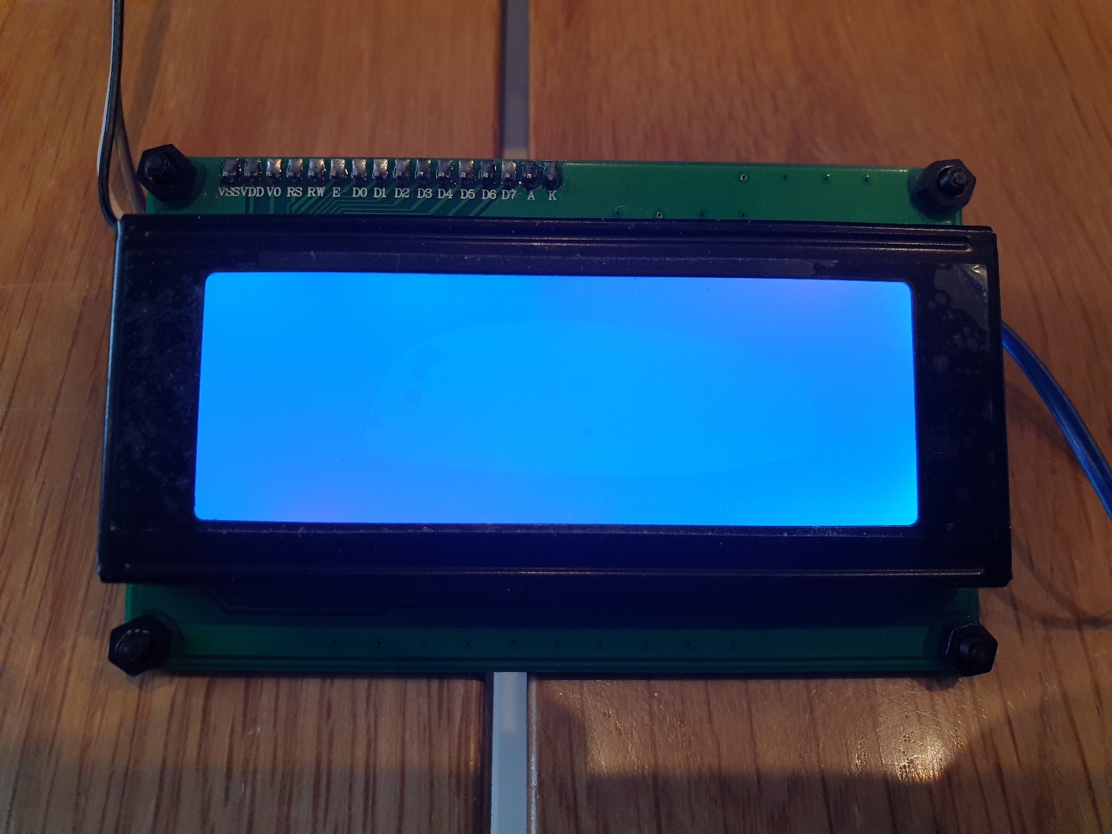 Auch bei abgespeckten Display messe ich 4,5V an den Pins auf der Platine. Warm wird erstmal nix! Der GND ist nur für das Foto so verrutscht... :puzz