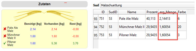 Übrigens hat man mehere Hefegaben, dann stimmt die Empfehlung nicht. Jede Hefegabe wird individuell berechnet und nimmt keine Rücksicht auf die anderen Gaben.