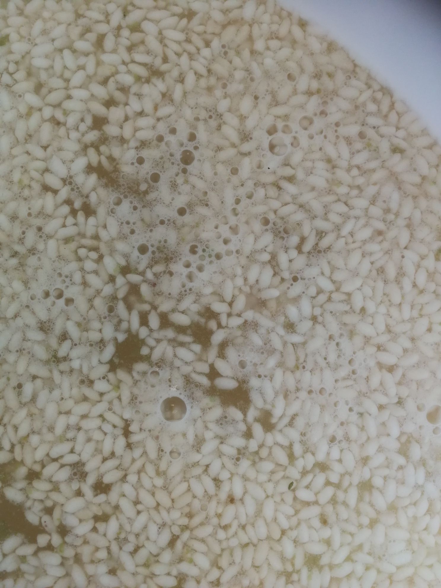 Die MPF (multiple parallele Fermentation) scheint nach den Gärbläschen im Bild zu laufen aber es kommt mir recht dünn und "körnig" vor? Ich kenne das eher als dicken, matschigen Reisbrei der dann durch die Koji- Enzyme immer dünnflüssiger wird. Bei der finalen Filtration des Amazake sollte dann außer etwas "Zellschlamm" nichts mehr von den Körnern übrig sein..