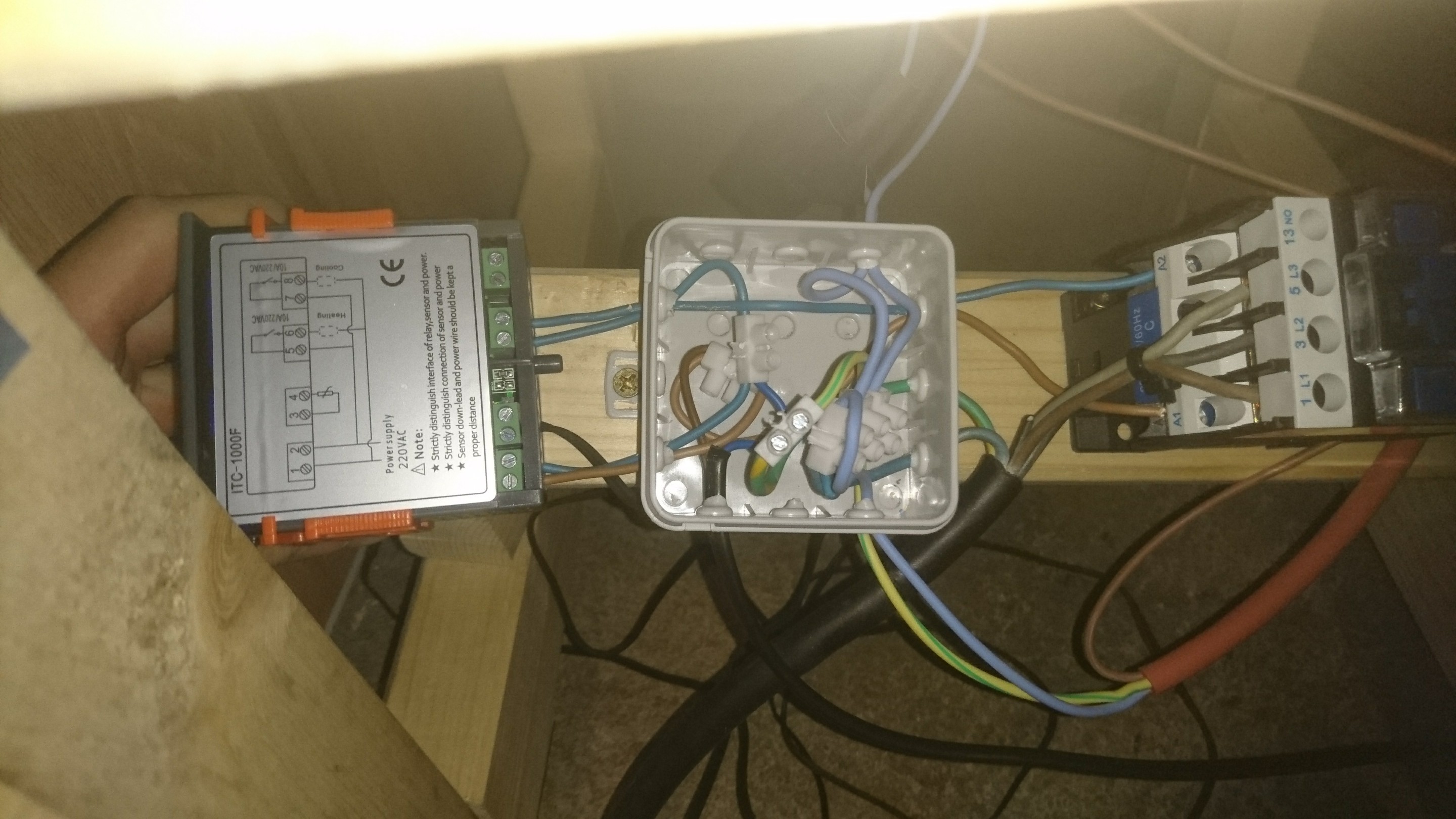 Nun war die Frage der Temperatursteuerung das nächste Problem an welchem ich lange überlegt habe. Ein Inkbird itc 1000 kann das steuern übernehmen allerdings kann dieser nur 16 Ampere steuern sprich eine von drei Phasen. Da ich nicht all zu viel Erfahrung mit Elektrik habe hat das einiges an "Google" Kenntnissen benötigt bis ich wusste das ein Leistungsschütz das ist was mein Problem löst. Also eines gesucht welches mindestens 16 Ampere abhaben kann. Das welches ich gefunden habe kann 32 Ampere schalten und ist ein recht ordentliches Gerät... 32 Ampere pro Fase versteht sich :Ahh