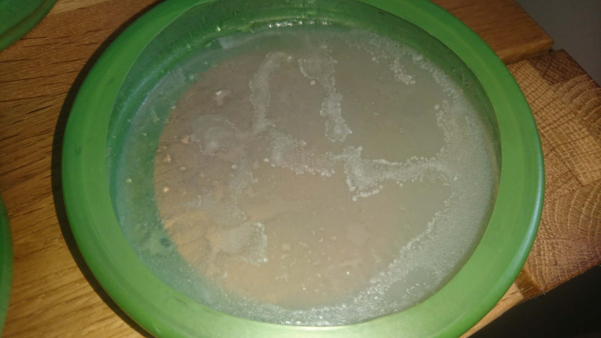 Ich habe heute etwa 2 Wochen nach Beginn der Flaschengärung eine Flasche kalt gestellt um mal zu sehen in welche Richtung es geht.