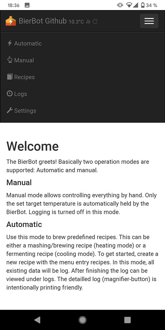 - Passwortschutz damit man den BierBot über das Internet freigeben kann und so die Vorgänge im Gärkeller oder der Brauerei auch aus der Ferne steuern und überwachen kann.