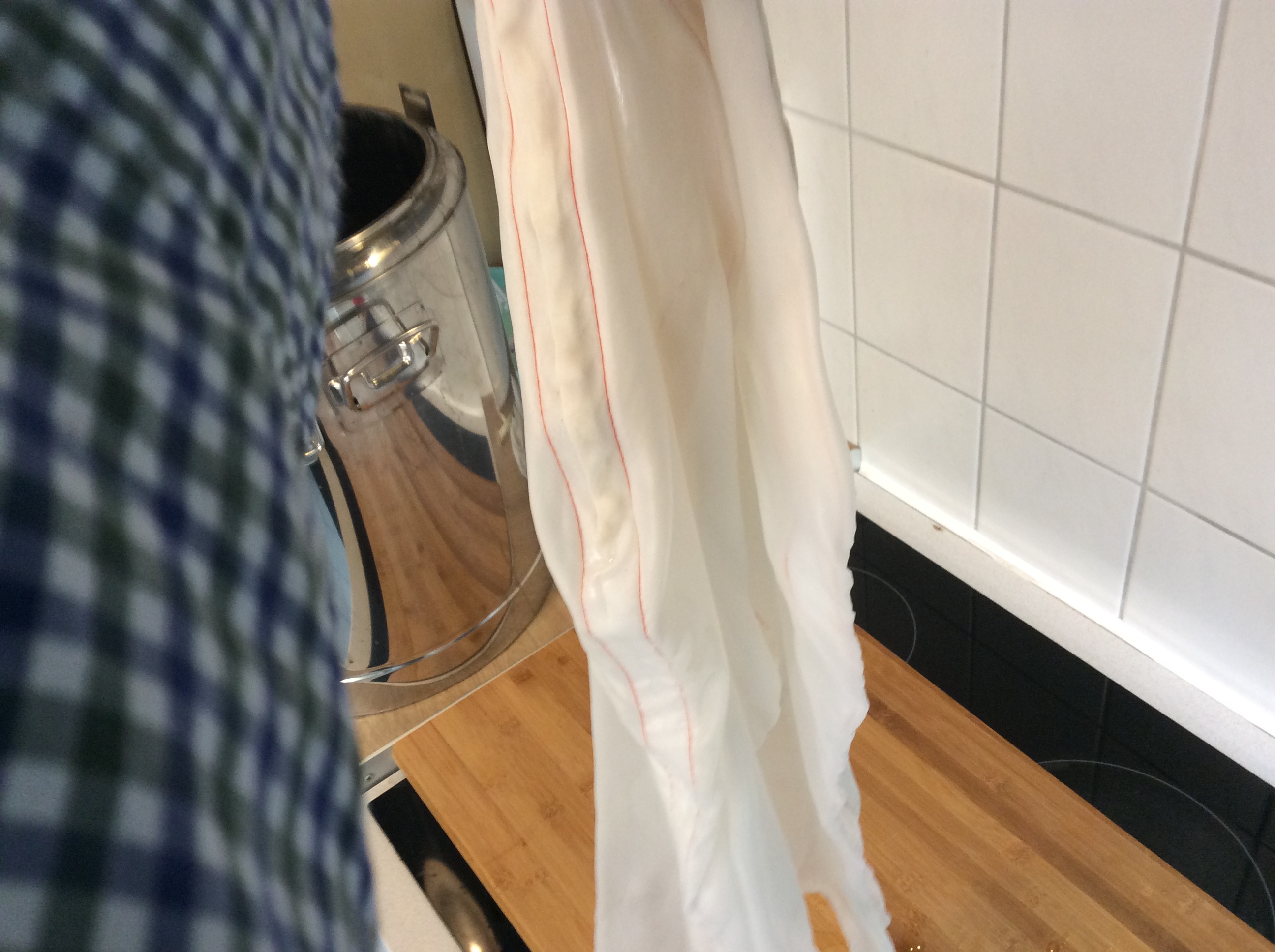 Die Vorteile, vor allem zeitlich, kann ich nochmal genau erklären bzgl. Der Läuterspirale. Also am Maischeende, nach einer Stunde, hebe ich den Sack aus dem Thermopot, das dauert 3 Min. Dann hängt er genau über dem Pot. Dann drücke ich soviel Wasser raus wie es geht und bekomme dazu noch eine recht klare Würze und vor allem mehr Würze, da ich die Hälfte des Verlustes der beim klassichen Läutern entsteht rausdrücke. Das dauert ca 5 Min wenns hochkommt. Damit ist das Läutern dann abgeschlossen und ich kann in den Einkocher zum Hopfenkochen abfüllen. Nach ca. 5 Min ist alles im Einkocher und das Hopfenkochen kann starten. Der tropfende Sack ist keinerlei Arbeit, da er direkt in den Thermopot tropft und auch beim Drücken keinerlei Spritzer entstehen. Den Sack trage ich übrigends direkt in die Biotonne und danach wird er nur gewendet und kurz mit Wasser abgespült. Dann ist er eigentlich Sauber. Er wird dann aber noch eben in ein wenig Spülwasser eingelegt.fg100 hat geschrieben: Sonntag 26. April 2020, 10:09 Die Idee mit dem Sous Vide Stab finde ich super, aber den Vorteil z.B. gegenüber einer eingebauten Lauterspirale sehe ich nicht. Im Gegenteil. Du lässt die Würze in einen anderen Topf zum Kochen und hantierst zusatzlich mit einem tropfenden und sabbernden Sack rum. Das ist doch zusätzliche Arbeit. Warum maischt du nicht gleich im Kochtopf ein? In einem gut isolierten Einkocher geht die Maische in der Stunde etwa zwei Grad runter. Sack in den Einkocher. Heizen mit dem Stab. Oder erst heizen mit dem Einkocher und dann Sack rein. Einmaischen mit 68° und fertig. Spart auch noch die Reinigung des Thermoport.