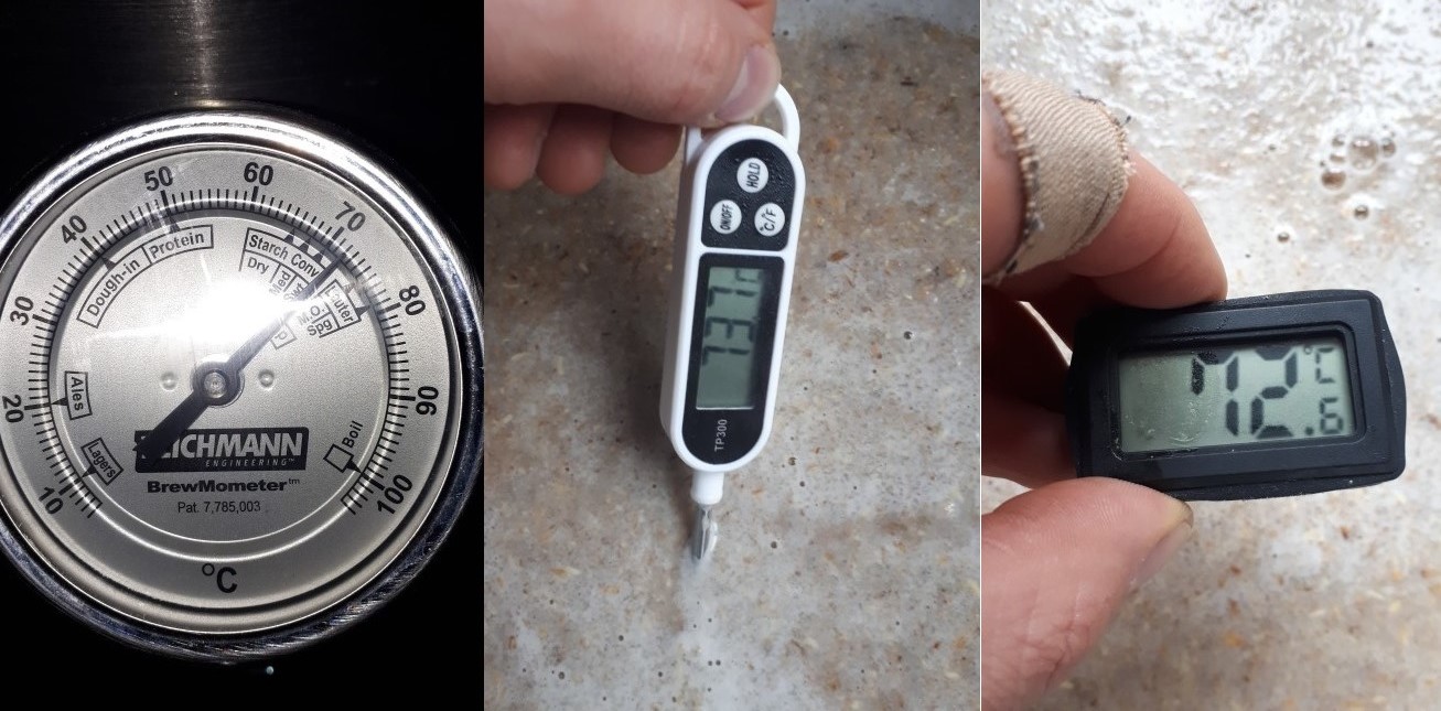 Nächster Zeitvertrieb: Thermometer-Vergleich. Das billige Einstechthermometer zeigt ein Grad mehr an als die beiden anderen.