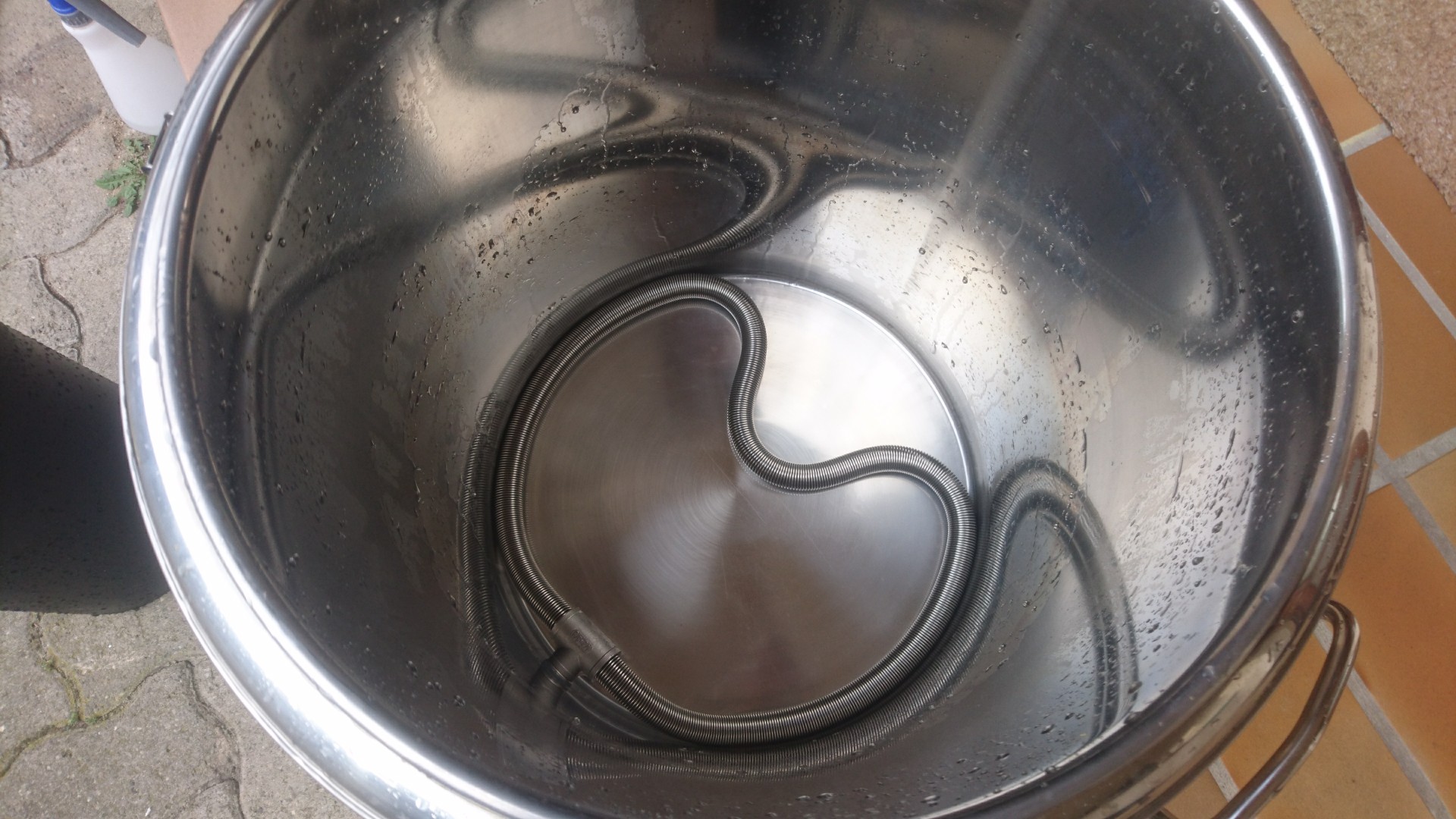 Zuerst wollte ich um Geld zu sparen (zweite Ausbildung und eigene Wohnung lässt nicht so viel Spielraum) im 30 Liter Eimer mit Läuterhexe oder Läuterfreund (weiß nicht mehr welche Variante) läutern, da ich davon ein paar habe um Wein zwischenzulagern um nach dem filtern abzufüllen usw.
