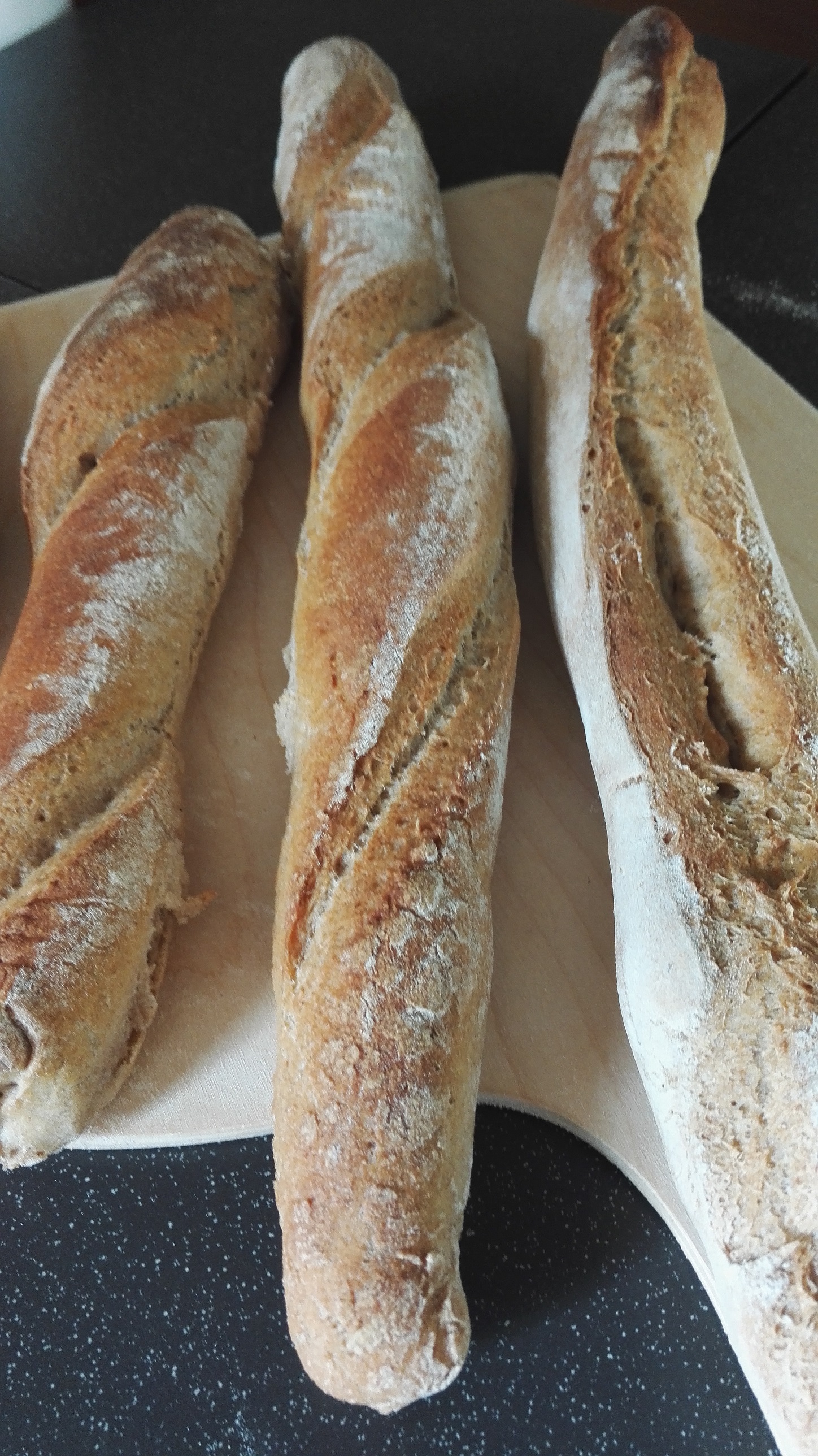Baguette mach ich dann aus dem, was übrig ist. Hier nutz ich dann auch ein bißchen Hefe.