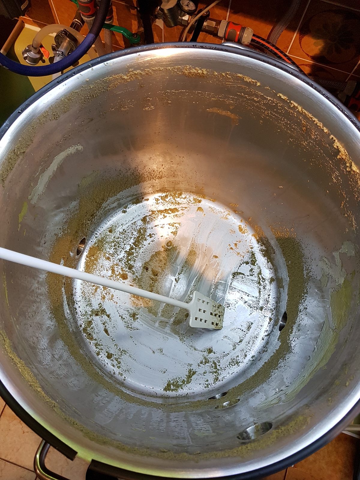 Klar, die Ablagerungen sind unschön, allerdings wird ja noch gekocht. Fürs Umpumpen von der Pfanne durch den Gegenstromkühler in den Unitank werde ich aber weiter die Blichmann verwenden, da die wesentlich besser zu reinigen ist - gerade im kritischen Kaltbereich.