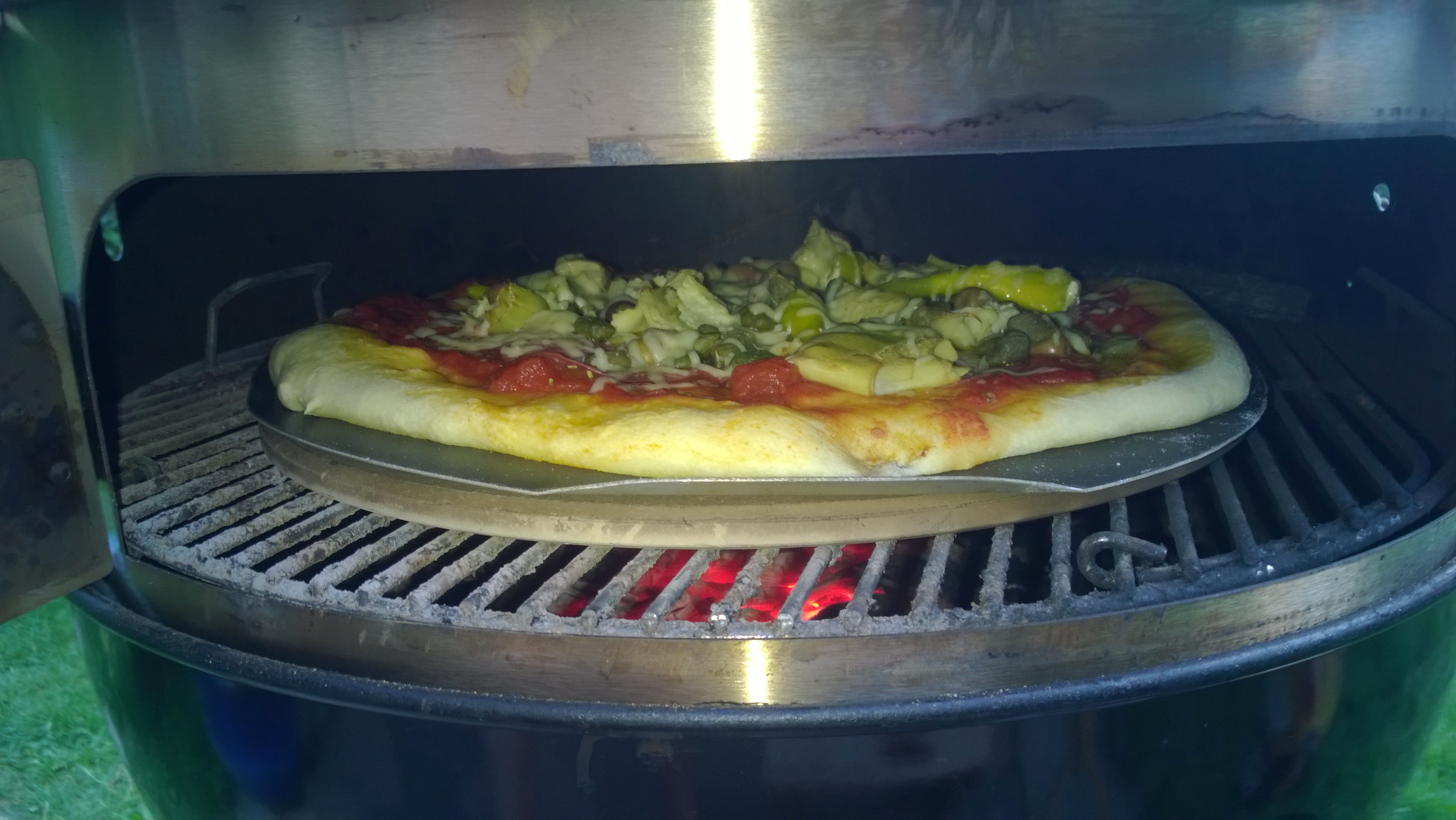 das ist der 57er von Weber mit dem Drehspieß und Motor von Weber. Der Ring auf dem der Motor sitzt ist aber nicht der von Weber. Den habe ich aus dem Grillsportverein Forum. Da gibt es den User "Firefighter" der die Dinger in Heimarbeit herstellt. Sind aus Edelstahl, haben diese praktische Pizzaklappe und noch eine Aufhängung für ein zusätzliches Rost, womit man dann auf zwei Ebenen grillen kann. Damit habe ich letzten Sommer 16kg Rollbraten für ne Party gemacht...
