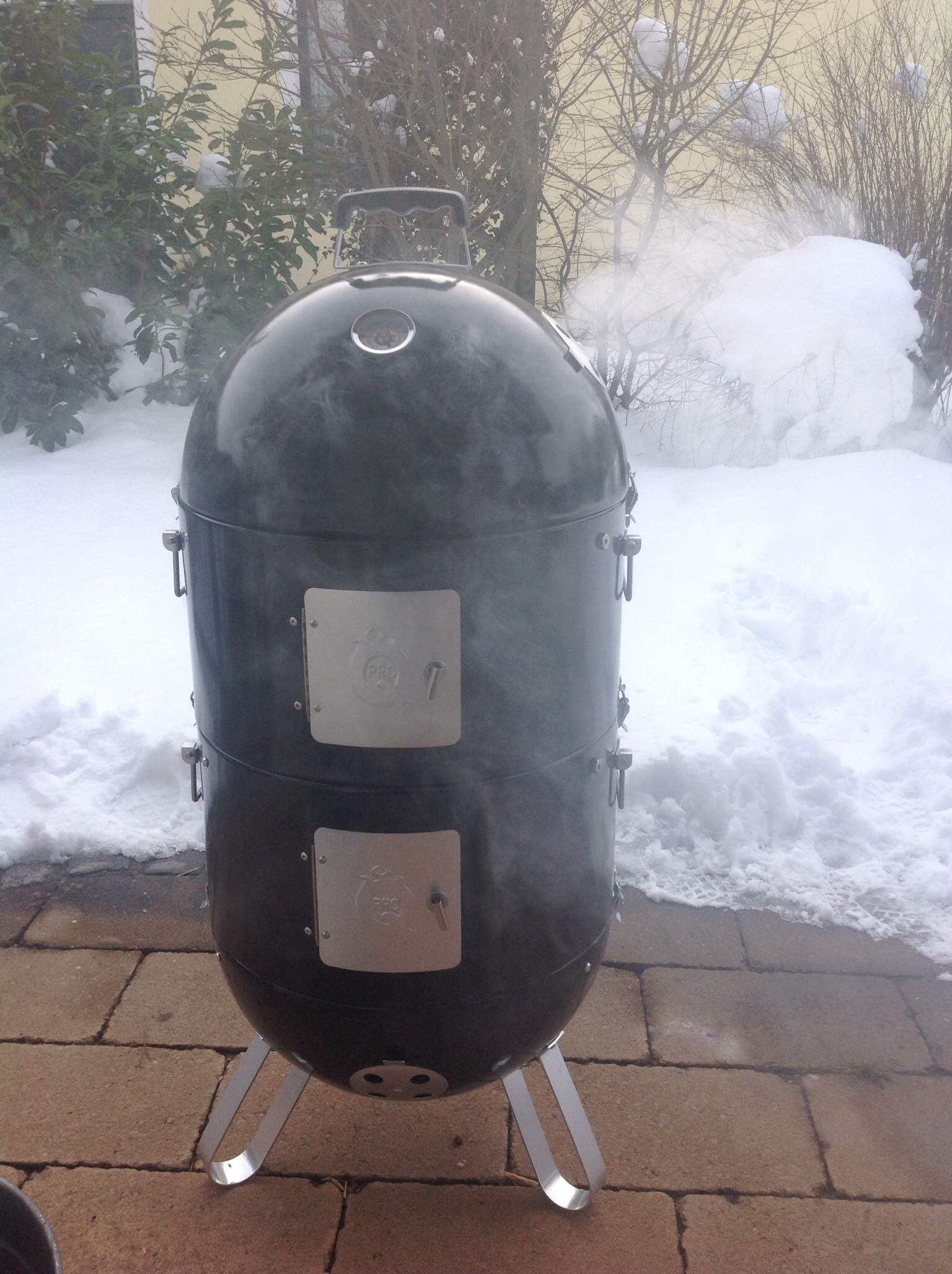 kann ich mich Matthias nur anschließen. Rauch wird am besten im Rohzustand aufgenommen. Also zunächst bei 80-90° je nach gewünschtem Rauchgeschmack für 0,5 - 2 h unter Rauch in die Kugel, dann über Nacht bei 90° in den CP.