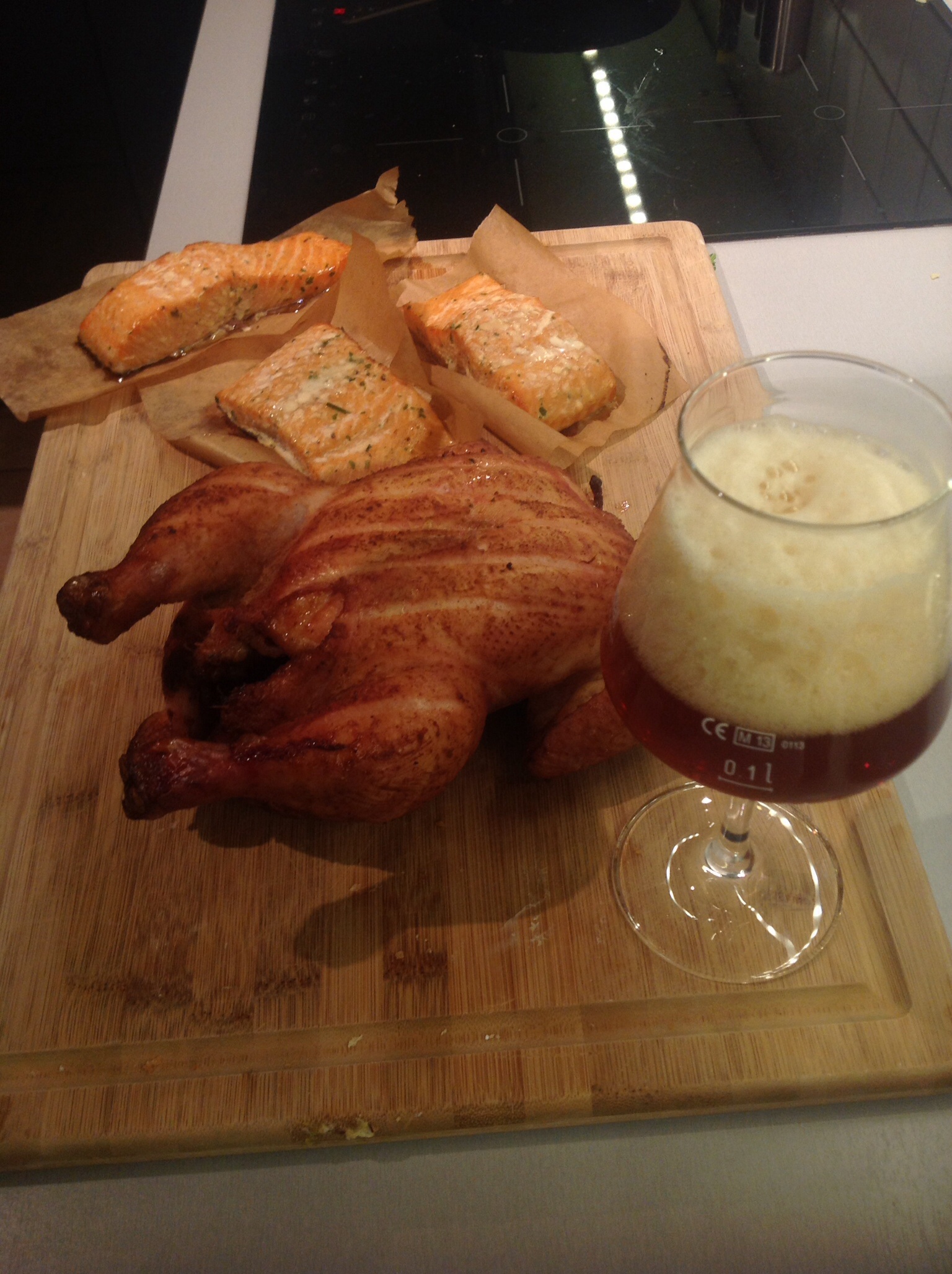 Daher, wie bereits gesagt, über direkter Flamme nur leicht zum Kokeln/Qualmen bringen, die Planke neben die Glut ziehen und indirekt weiter grillen.
