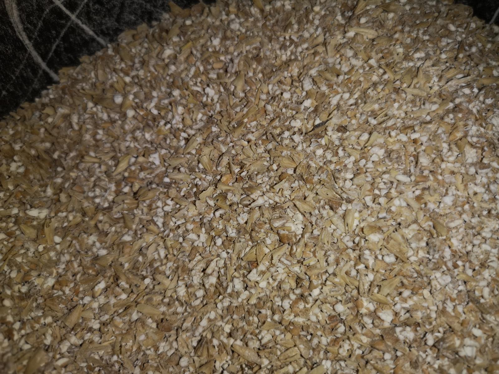 - Da beim Hermann-Verfahren zu beginn nur die Hälfte des Schrotes benötigt wird habe ich alles nochmal gut vermischt um alle Malze gleichmäßig zu verteilen.