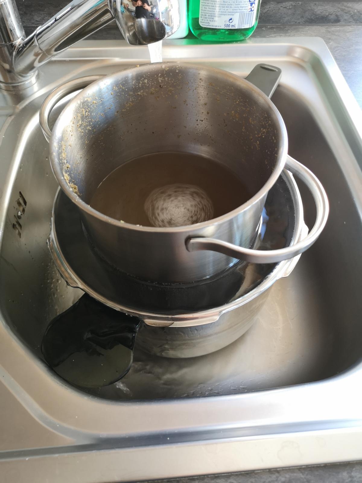 Kurzer abstecher in die Küche, ich habe 3,5l dünne Würze mit ca 4Brix leicht gehopft und 60 min Gekocht um damit die Hefe zu wecken und eine Art Starter für den nächsten Tag zu haben.