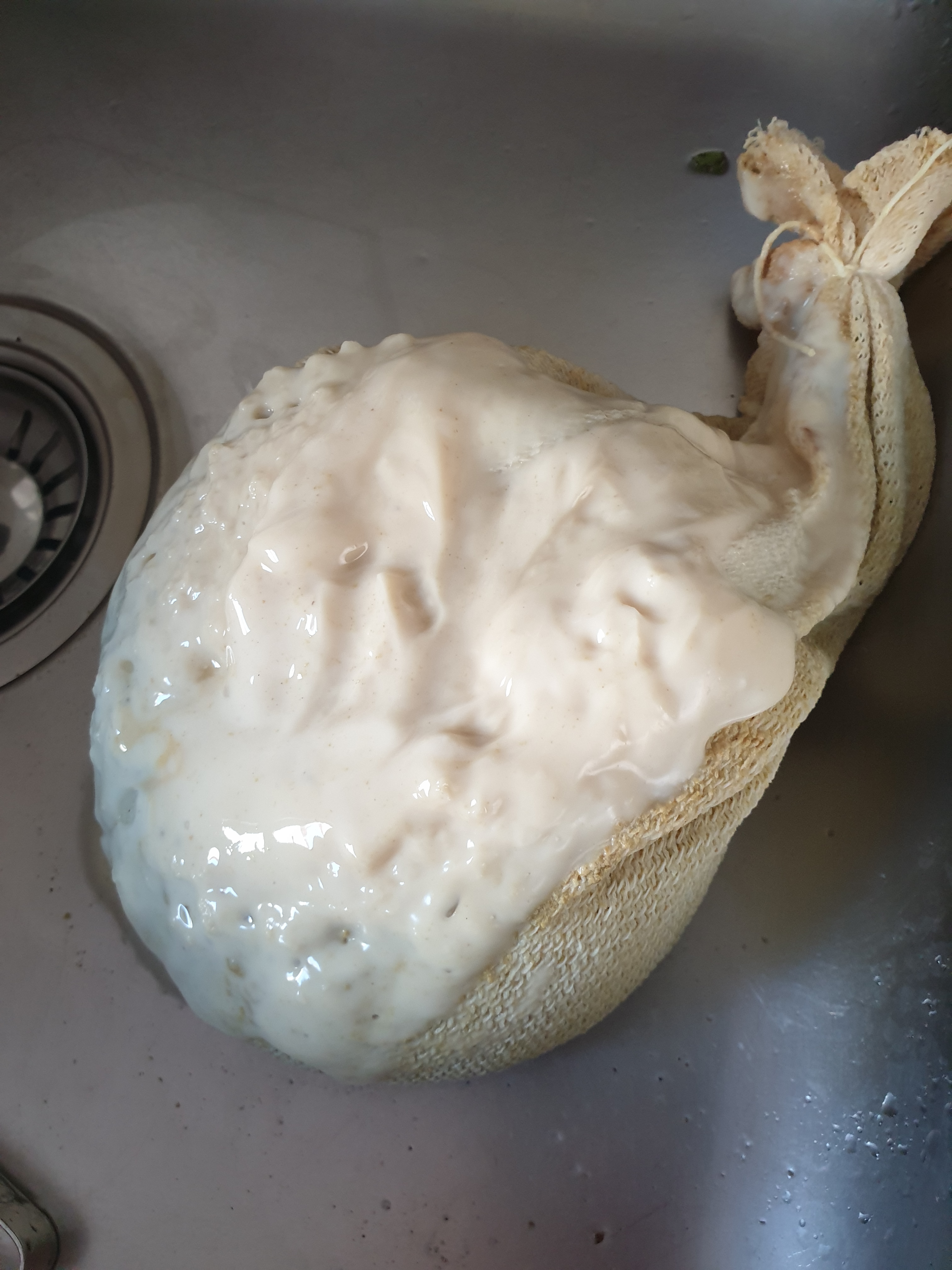 Kann vieleicht einfach ein Zusammenspiel aus dem Fett in den Haferflocken und dem Milchzucker sein, das die Hefe so verschmiert hat.
