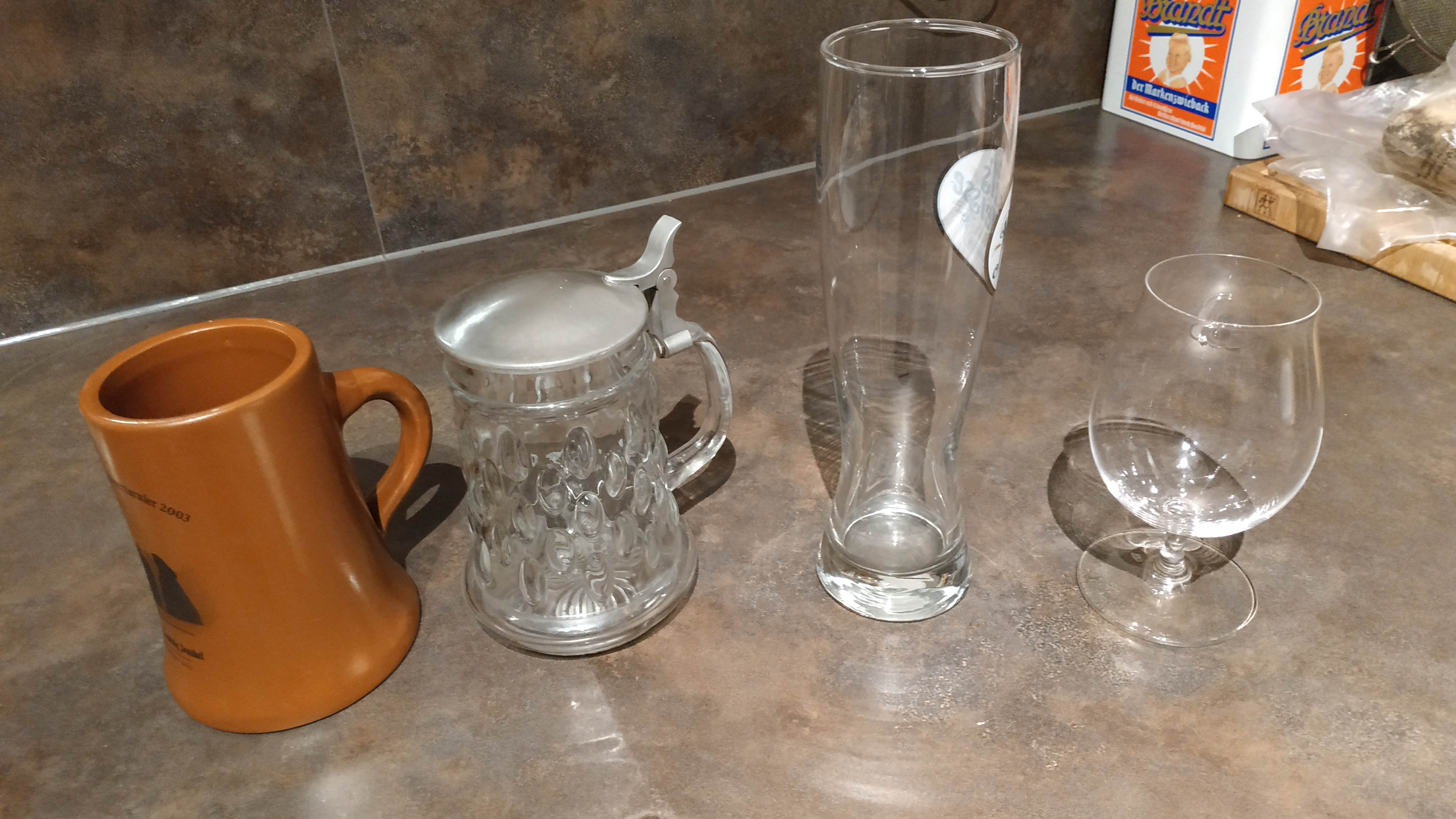 Ich verwende auch gerne eine bauchige Pilstulpe aus den 80ern, aber eher selten, da gehen nur 0,4L rein.