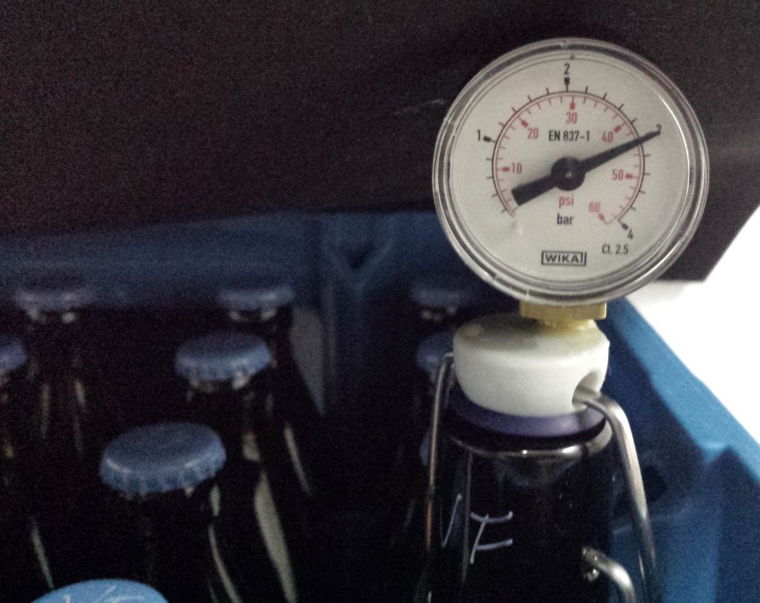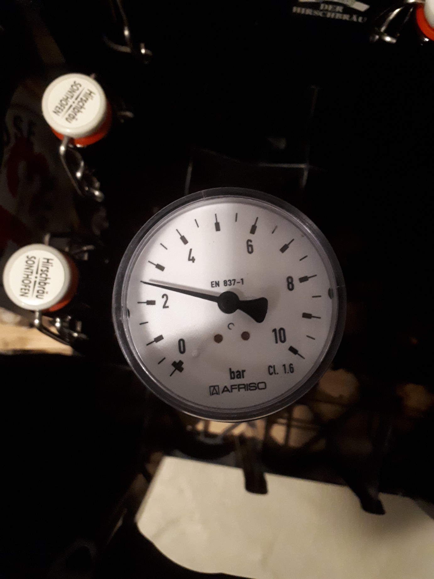 ich habe mir jetzt ein Flaschenmanometer zugelegt und der Druck meines gestern abgefüllten Hefe Weizen ist über Nacht auf 1,0 bar gestiegen.