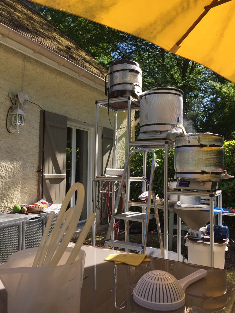 Ja, die Leiter. Weil ich, wie bei dem Eintauchkühler, komplett ohne Pumpe auskomme. Die Höhe des Auslaufs der Sudpfanne ist für 14 gal bzw 1/2 bbl SSBT Unitank berechnet. Alles Schwerkraft...Rumborak hat geschrieben: Donnerstag 11. Juni 2020, 22:02 Und warum hast du deine Anlage so hoch gebaut, dass du sogar eine Leiter brauchst?![]()