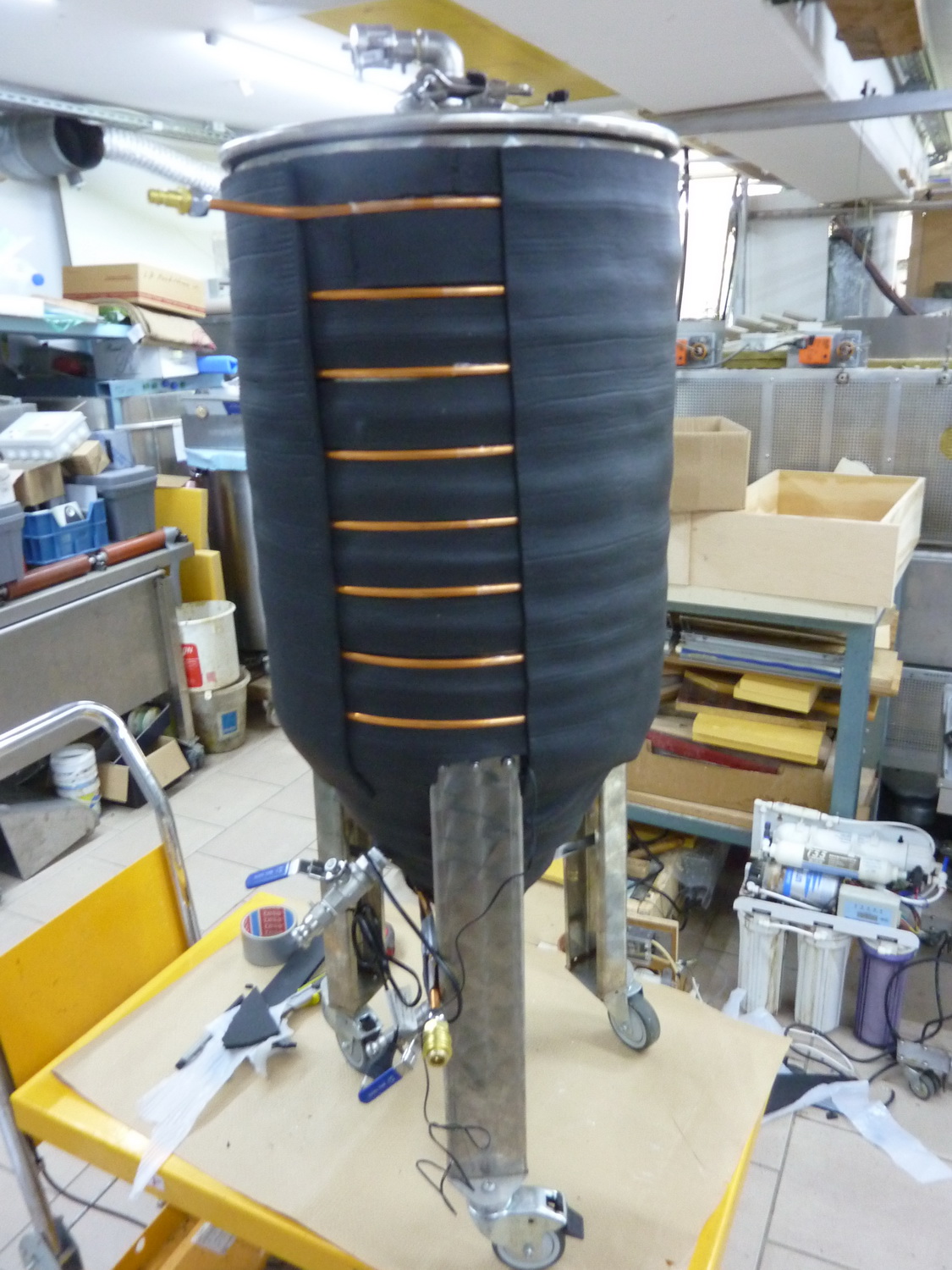 so und heute musse auch das 114 L ZKG dran glauben und wurde mit Mantelkühlung/Heizung ausgestattet und bekam noch eine Zusatzlage 12 mm Armaflex