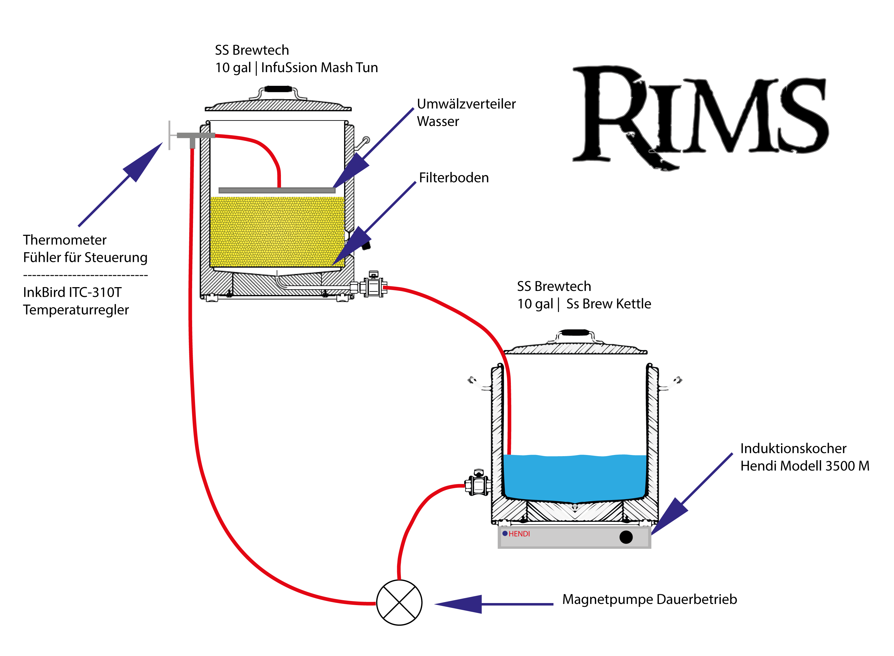 Deswegen überlege ich mir einen Wechsel zu einer so genannten RIMS Anlage, jedoch möchte ich die Würze über einen Topf mit Induktionsherd erwärmen.