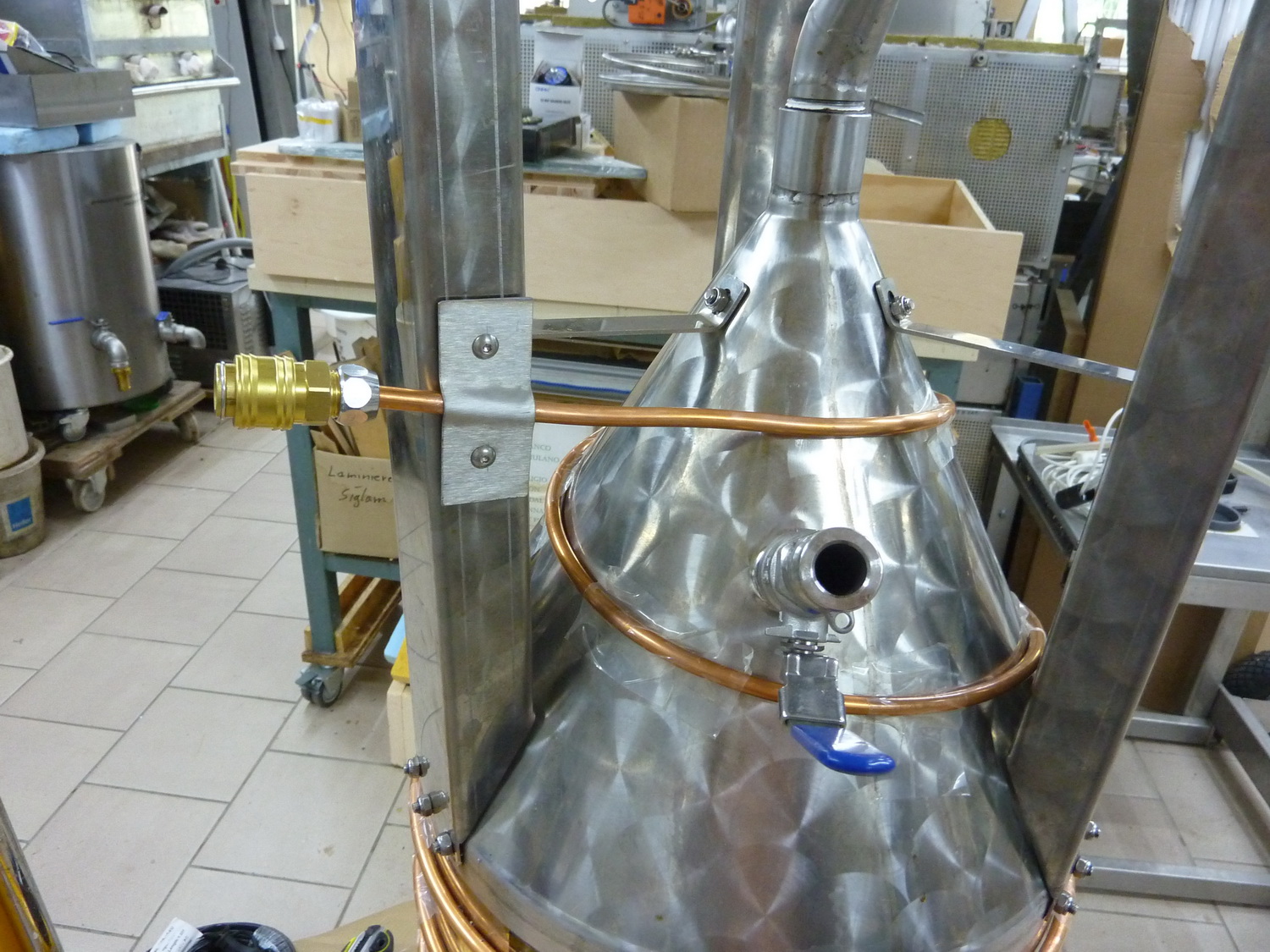 ich habe mir dafür einen zentralen Kühlschlauch (wird auch im Weinbau zur Temperaturregelung in Eichenfässern verwendet) aus Edelstahlwellrohr ( 0,22 mm Wandstärke > nicht ganz einfach zu schweißen :Bigsmile ) gebaut.
