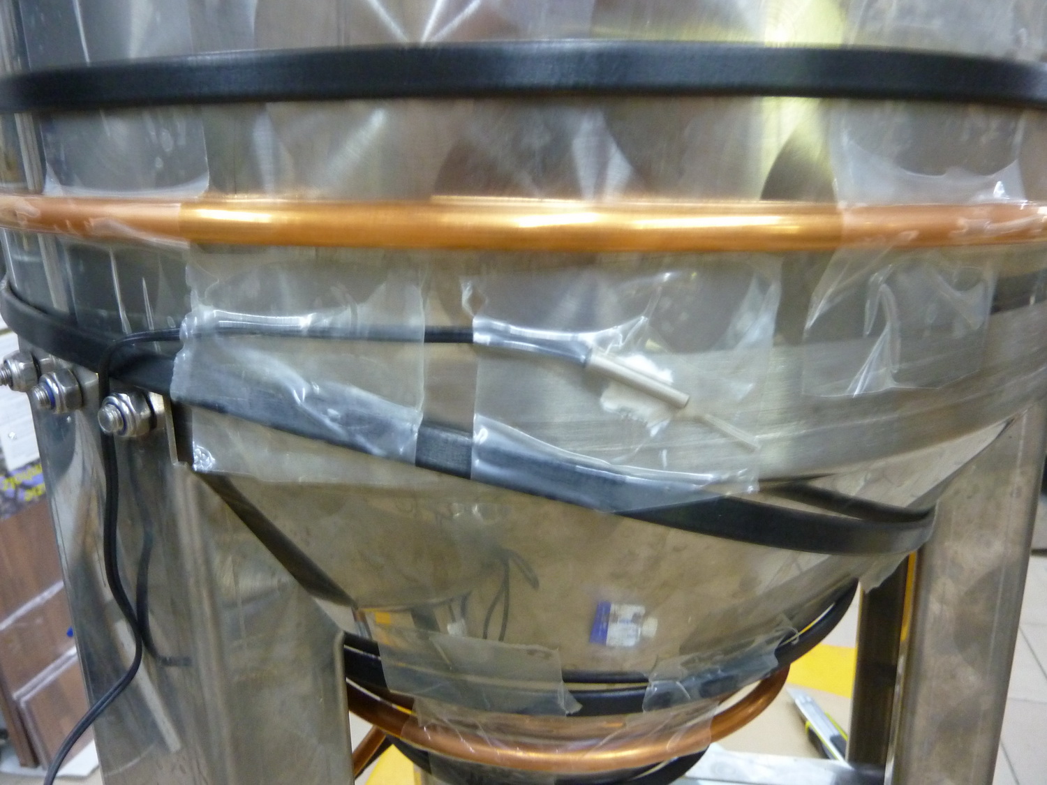 Nachdem das größer ZKG noch belegt ist und ich das heute gebraute Forbidden Wit wo vergären muss war ich gezwungen das Vorhaben Mantelkühlung/Heizung bein 60 L ZKG noch heute umzusetzen.